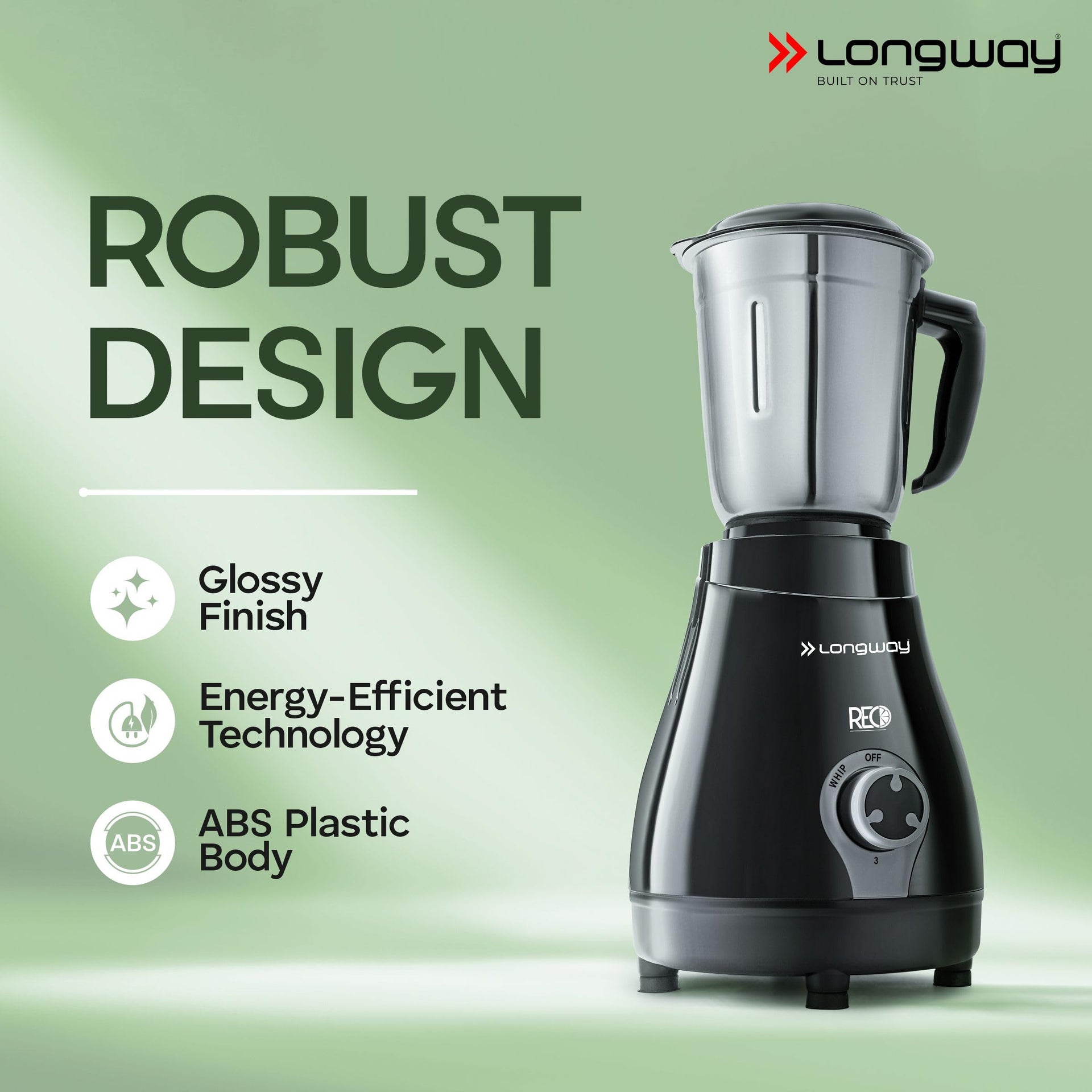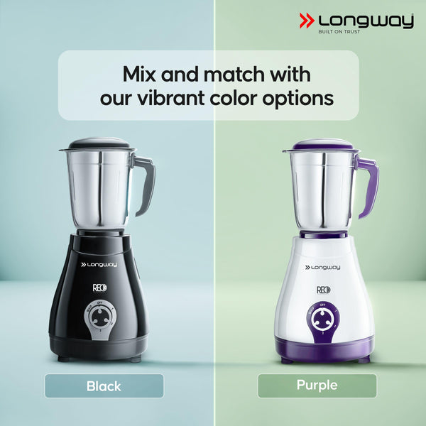 Longway Reo 550 Watt Mixer Grinder with 4 Jars for Grinding, Mixing, Blending, Juicing with Powerful Motor | 1 Year Warranty | (Black & Gray,4 Jars)