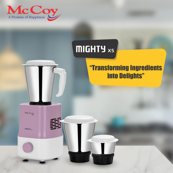 McCoy Mighty X5 Mixer Grinder | 3 SS Jars | 500 W Mixi | Hybrid Motor with 2 Years Warranty | Light Purple & White