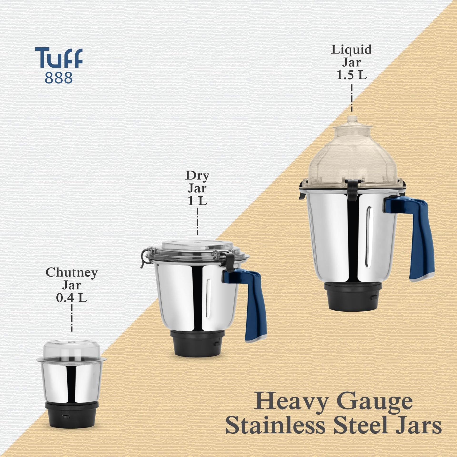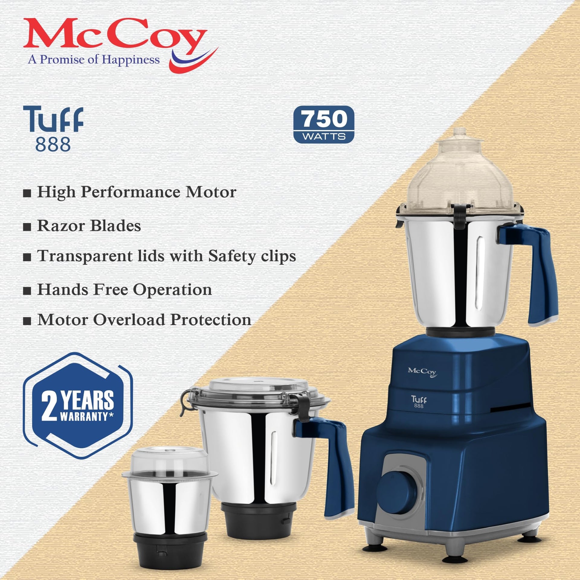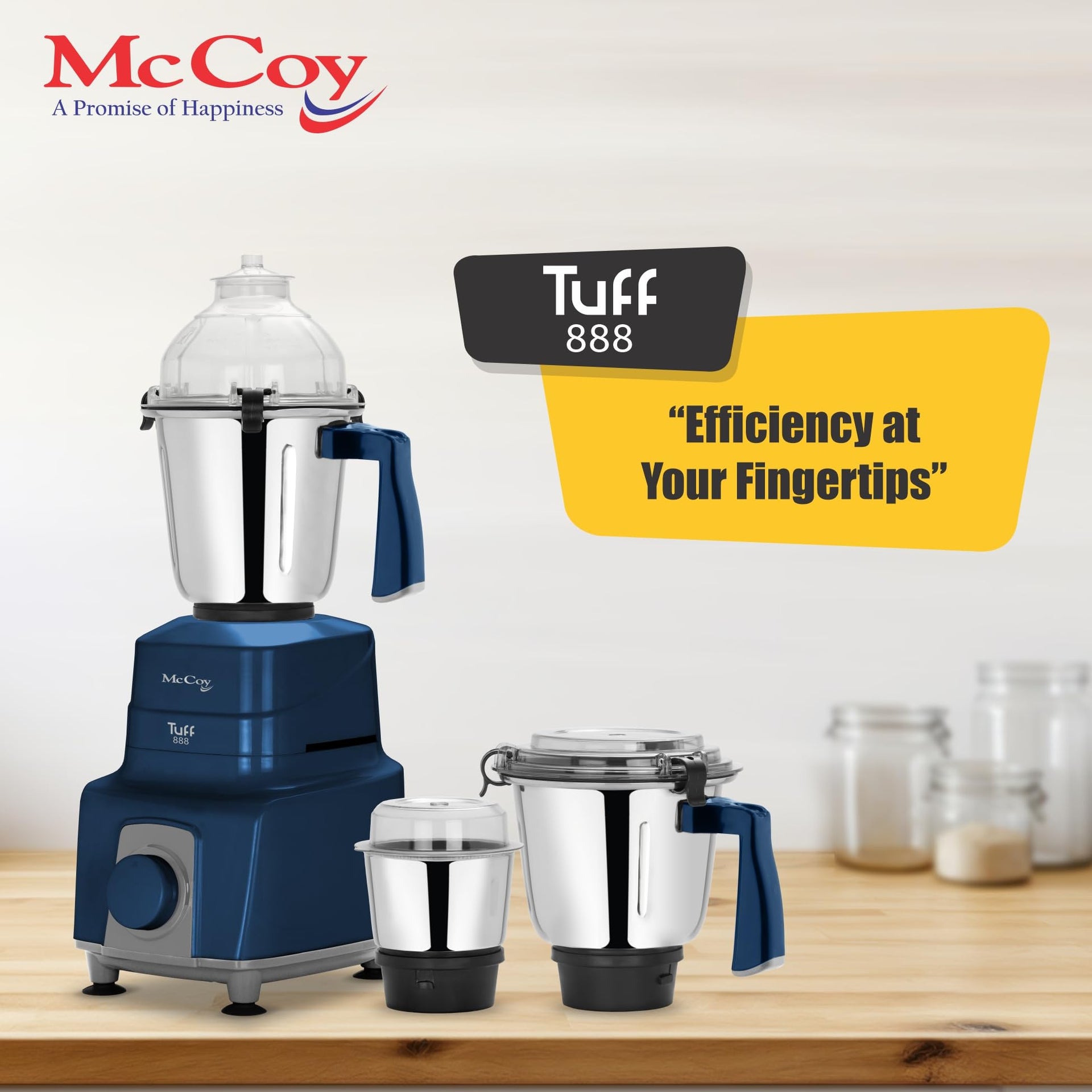 McCoy Mixer Grinder | Tuff 888 750W with 3 SS jars | Longer life Universal Hybrid Motor | ABS Body | Uniform Grinding | Blue