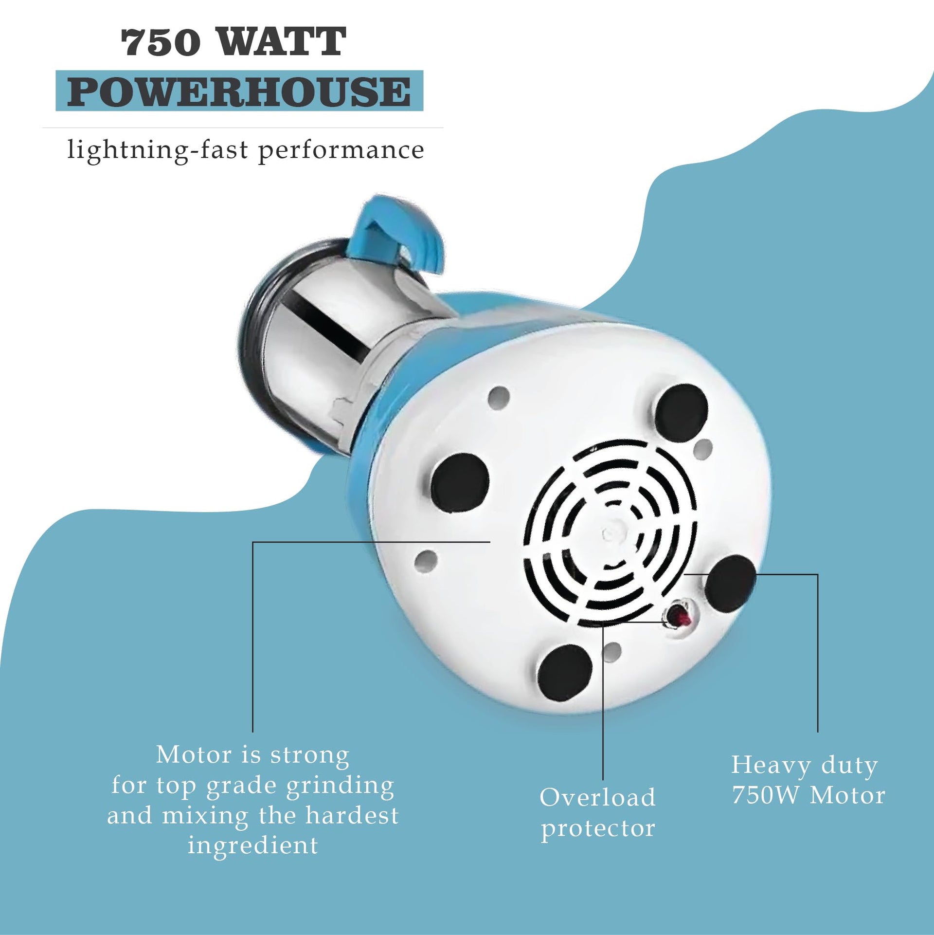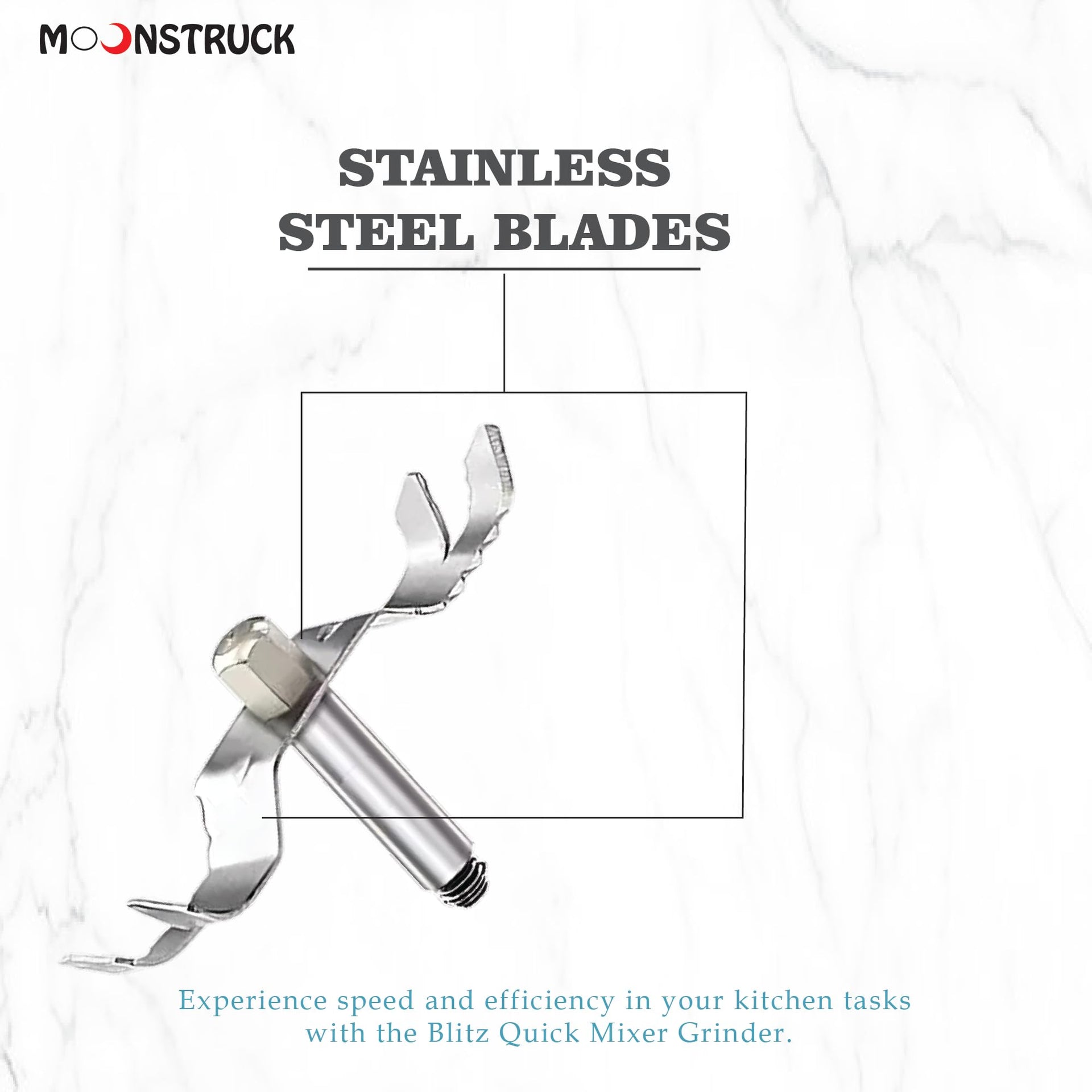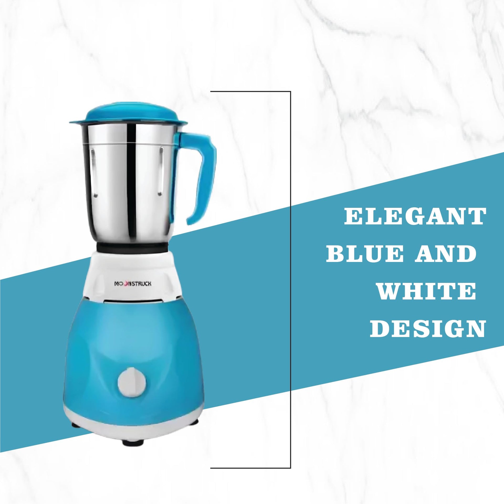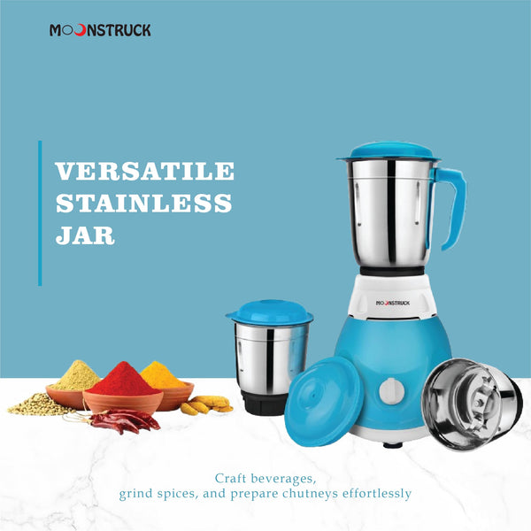 Moonstruck By Suprimo Blitz Quick Powerful 750W Motor Mixer Grinder, 3 Stainless Steel Jars, Overload Protection, Mixie For Kitchen With Heavy Duty Motor (Blue & White) (3 Jar) 2 Years Warranty
