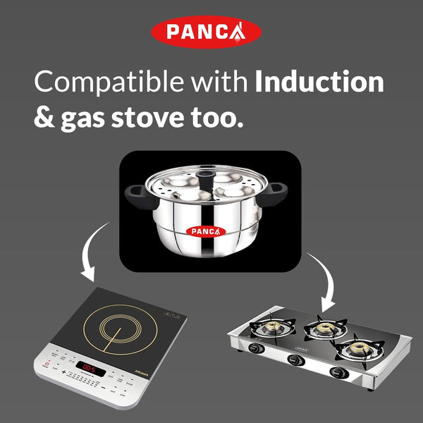 PANCA Idli Maker Stainless Steel Idli Cooker, Idli Steamer, Dhokla Maker and Mini Idli Plate, Idly Pot (Silver, 12 Idli 5 Plate Idli Kadai)
