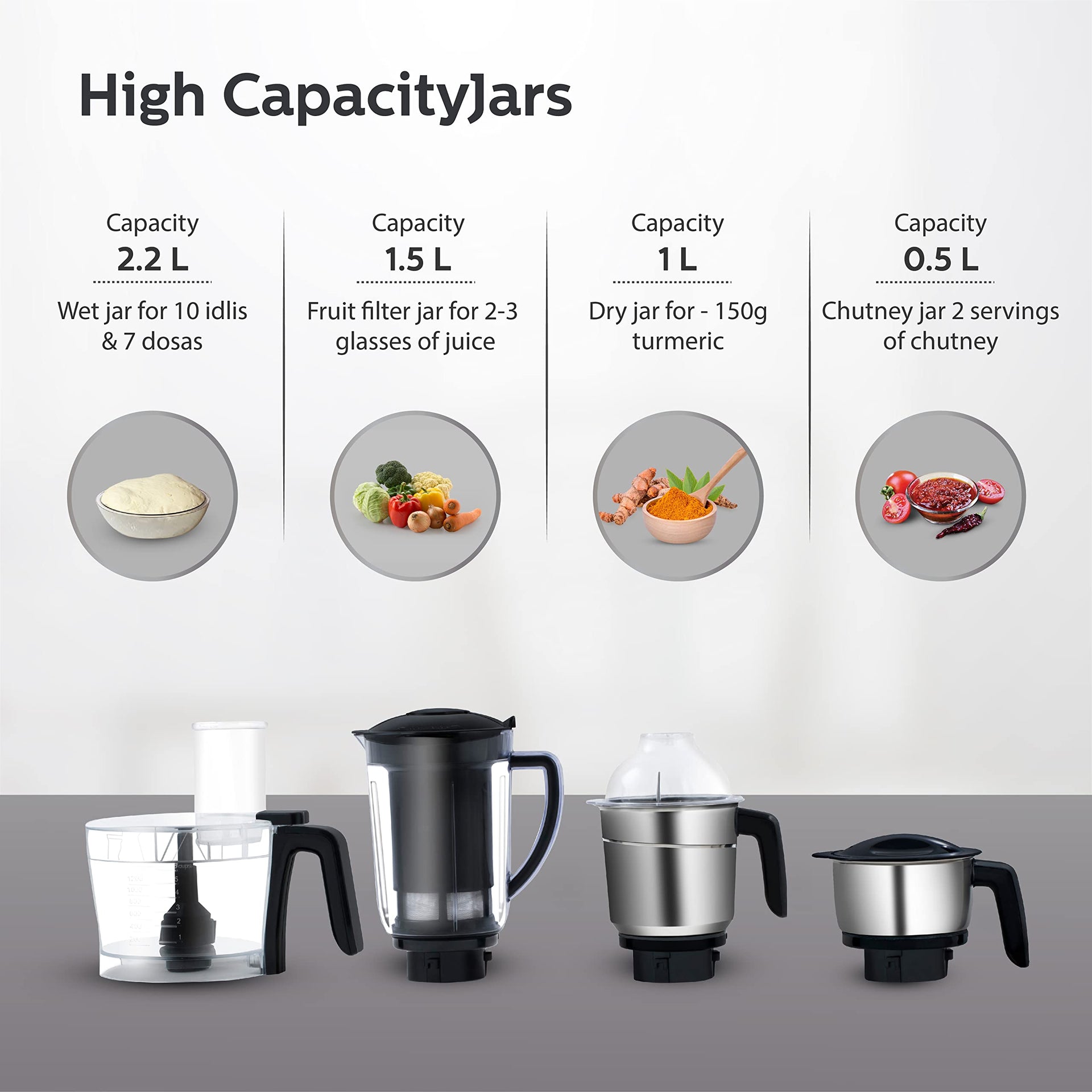 PHILIPS Mixer Grinder + Food Processor, 3-in-1 750 Watt (Mixer Grinder for home + Juicer + Food Processor) 4 Jar, (HL7707/01)