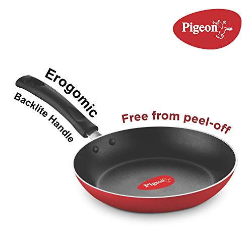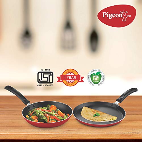 Pigeon Aluminium Nonstick Duo Pack Flat Tawa 250 and Fry Pan 200 Gift Set (Red)
