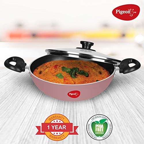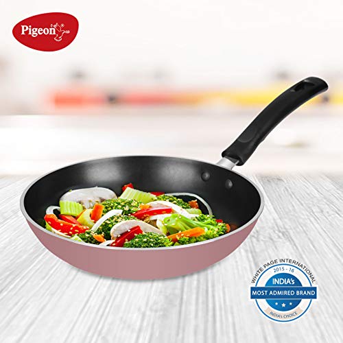 Pigeon Basics Non Induction Base Nons tick Aluminium Cookware set, including Nonstick Dosa Tawa, Nonstick Kadai With Glass Lid, and Nonstick Frying Pan, (Pink)