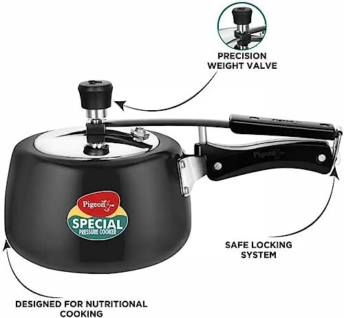 Pigeon by Stovekraft 3 Litre Special Plus Contura Hard Anodised Inner Lid Induction Base Pressure Cooker (Black) BIS Certified