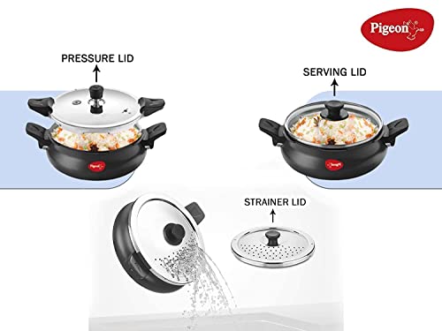 Pigeon By Stovekraft All in One Super Cooker Aluminium with Outer Lid Induction and Gas Stove Compatible 3 Litre Capacity for Healthy Cooking (Black)