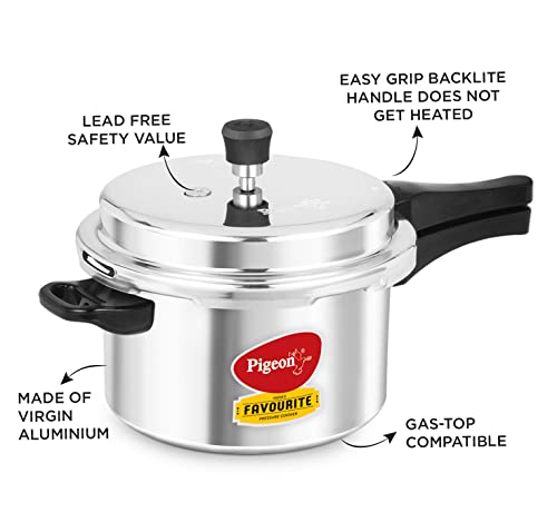 Pigeon by Stovekraft Favourite Non-induction Base Aluminium Outer Lid Pressure Cooker, 5 Litres, Silver
