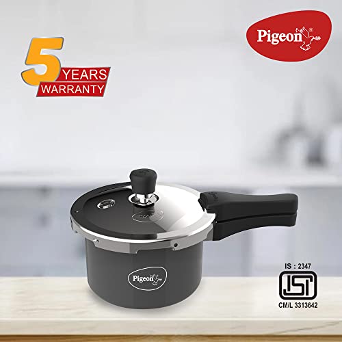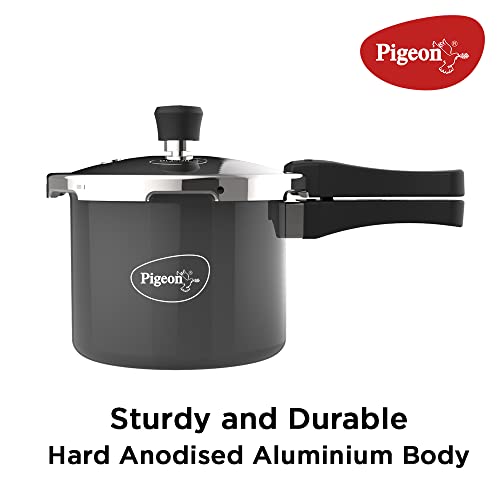 Pigeon By Stovekraft Hard Anodised Pressure Cooker with Outer Lid Induction and Gas Stove Compatible 3 Litre Capacity for Healthy Cooking (Black)