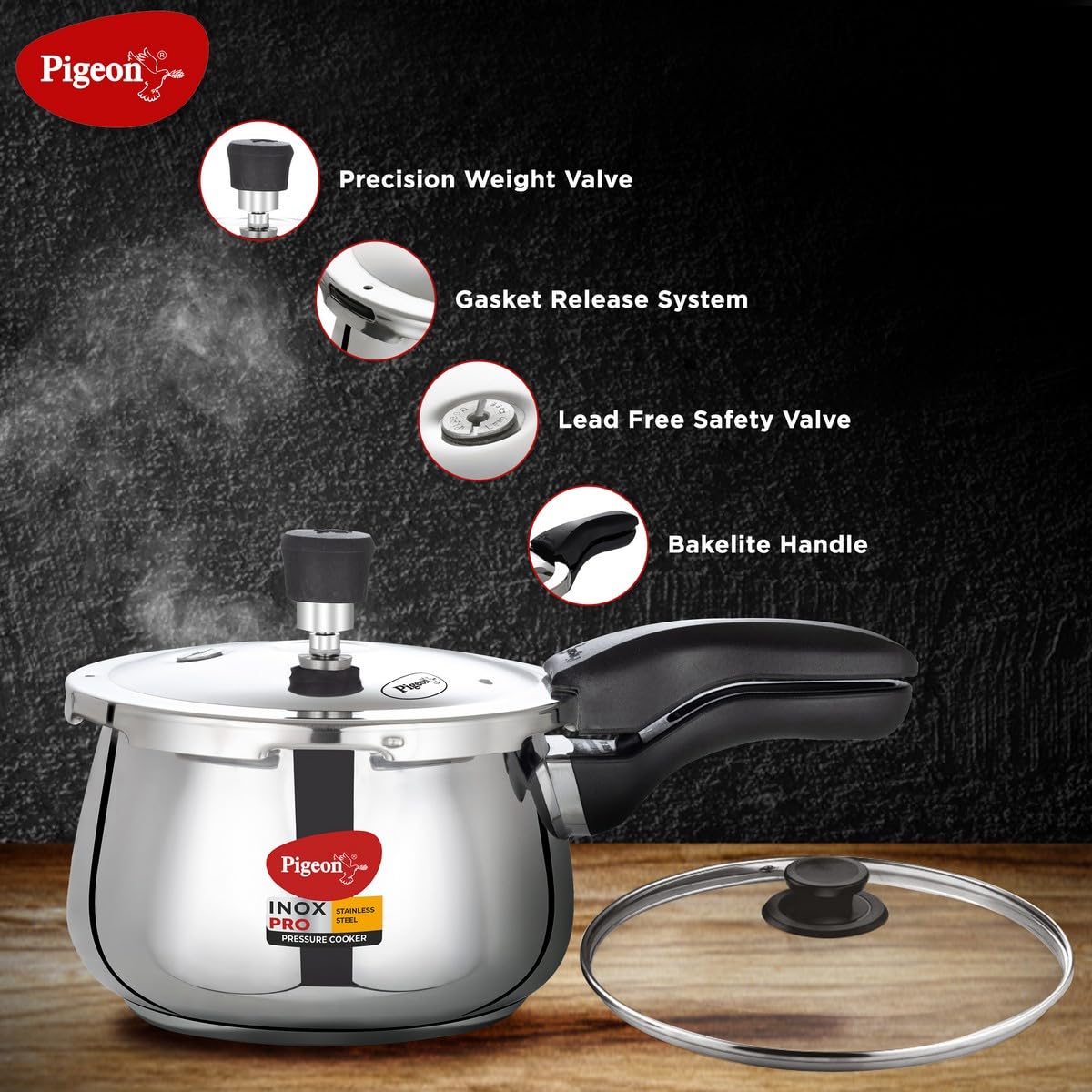 PIGEON BY STOVEKRAFT INOX PRO STAINLESS STEEL COOKER 3L OUTER LID COOKER-Induction base compatible