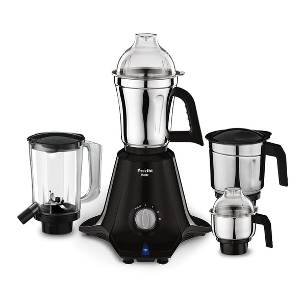 Preethi Boltz Mixer Grinder for Kitchen | 4 Jars 1000 Watts Mixie| 3 Stainless Steel Jar & 1 Blender Jar for Milkshake,Smoothie,Puree - Black (MG-288)