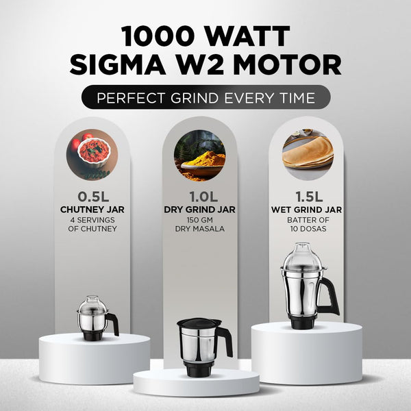Preethi Titan Mixer Grinder for Kitchen | 3 Jars 1000W Mixie| Black (MG-283)