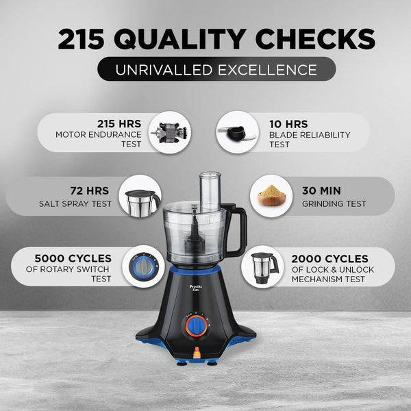 Preethi Zion Mixer Grinder for Kitchen - 4 Jars 750 Watt Mixie (3 Stainless steel Jars+1 Master Chef Plus Food processor Jar), Flexi lids, Vega W5 motor, Black (MG-227)