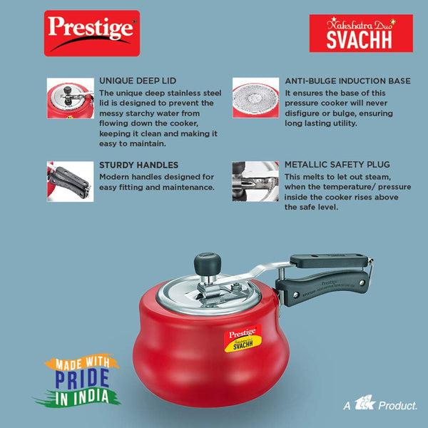 Prestige Svachh, 10752, 3 litre, Nakshatra Duo Red Handi, with Deep Lid for Spillage Control, Aluminium, Inner Lid