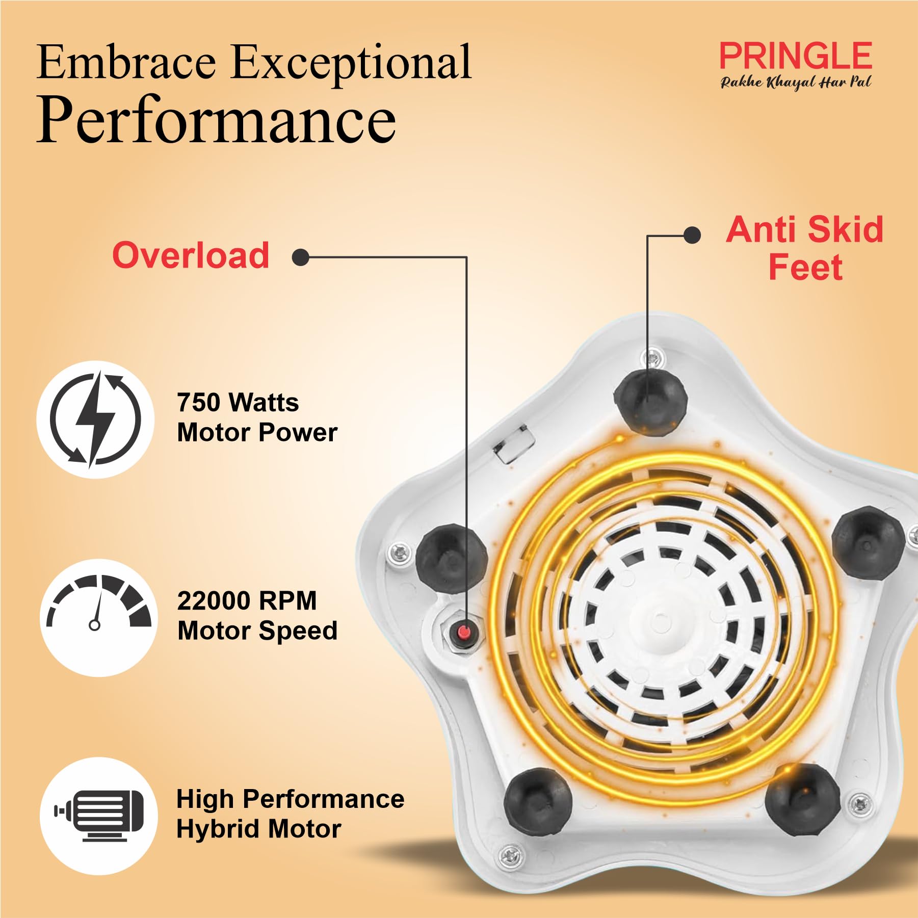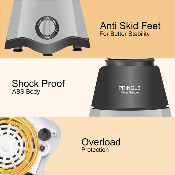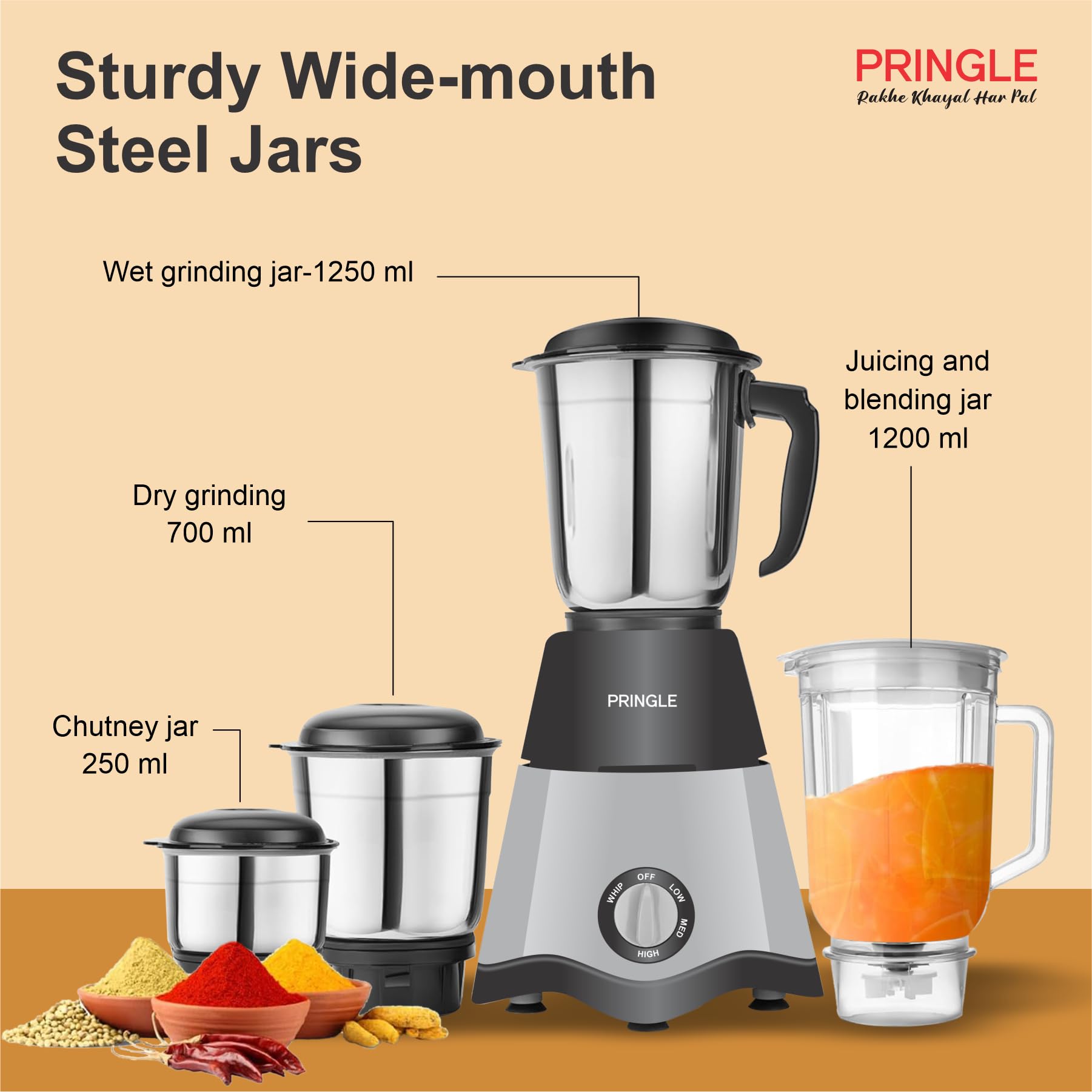 Pringle Crown Dlx 750 Watt Juicer Mixer Grinder with 4 Jars for Grinding, Mixing, Juicing with Powerful Motor | 1 Year Warranty | (Black & Gray, 4 Jars)