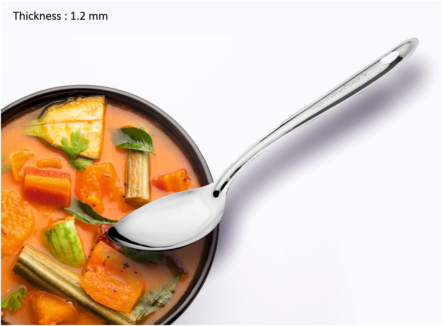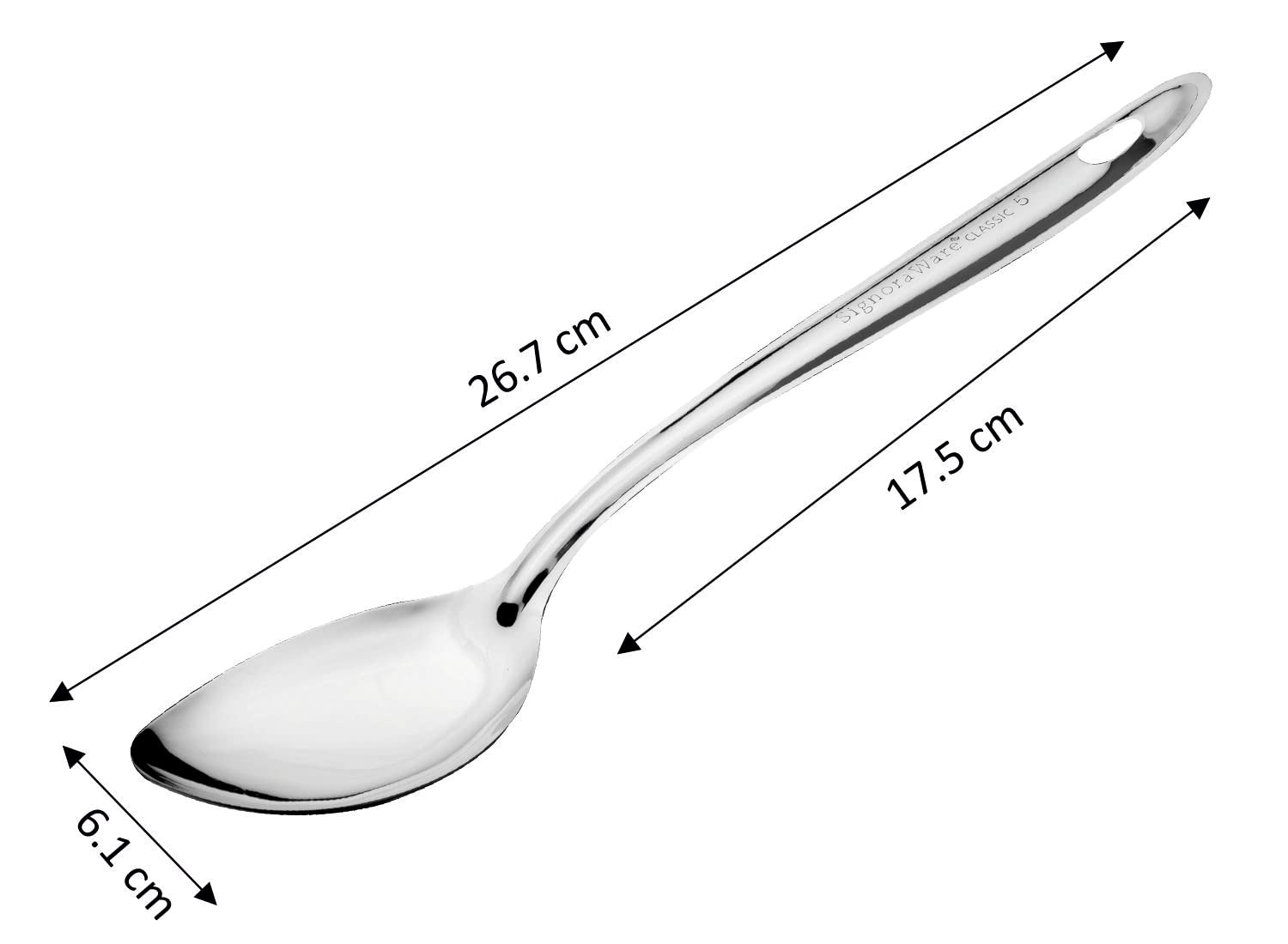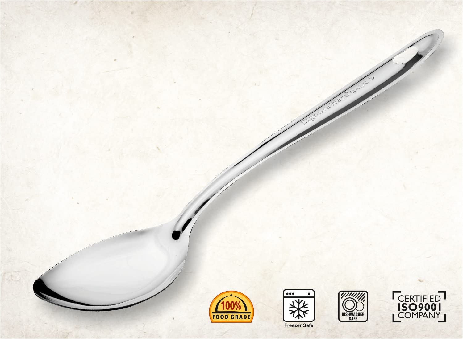 SignoraWare Kitchen Tools Stainless Steel (Food Grade) Heavy Gauge (1.1 MM) Classic Solid Pan Spoon No.4 (Serving Spoon) Chamcha for Serving Rice/Pasta/Subzi (Size 26.7 cm)