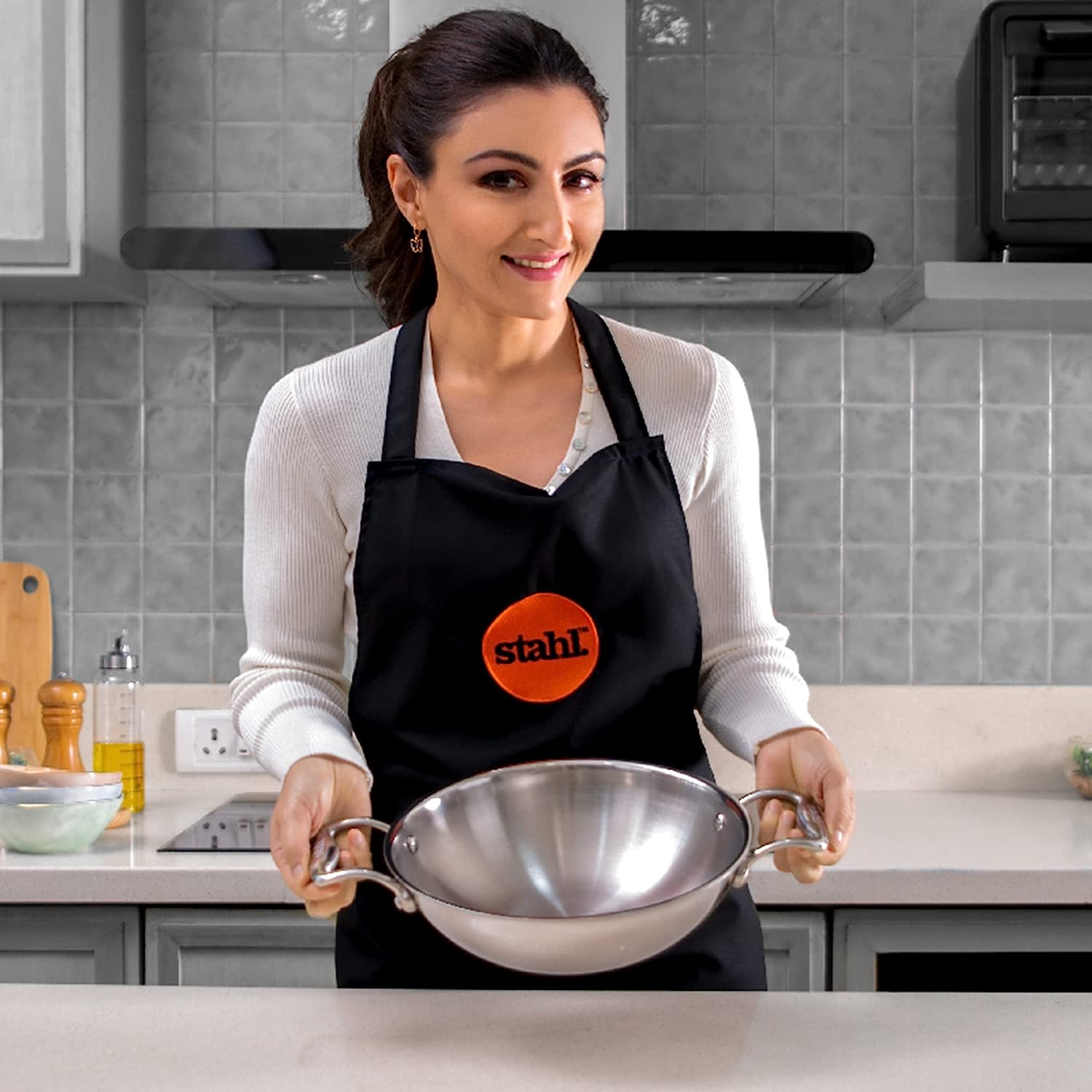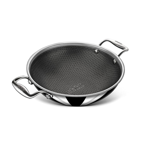 Stahl Triply Non Stick Kadai with Lid | Stainless Steel Kadai with Induction Base - Hybrid 6324, Dia 24cm, 2.4L (Serves 4-5 People)