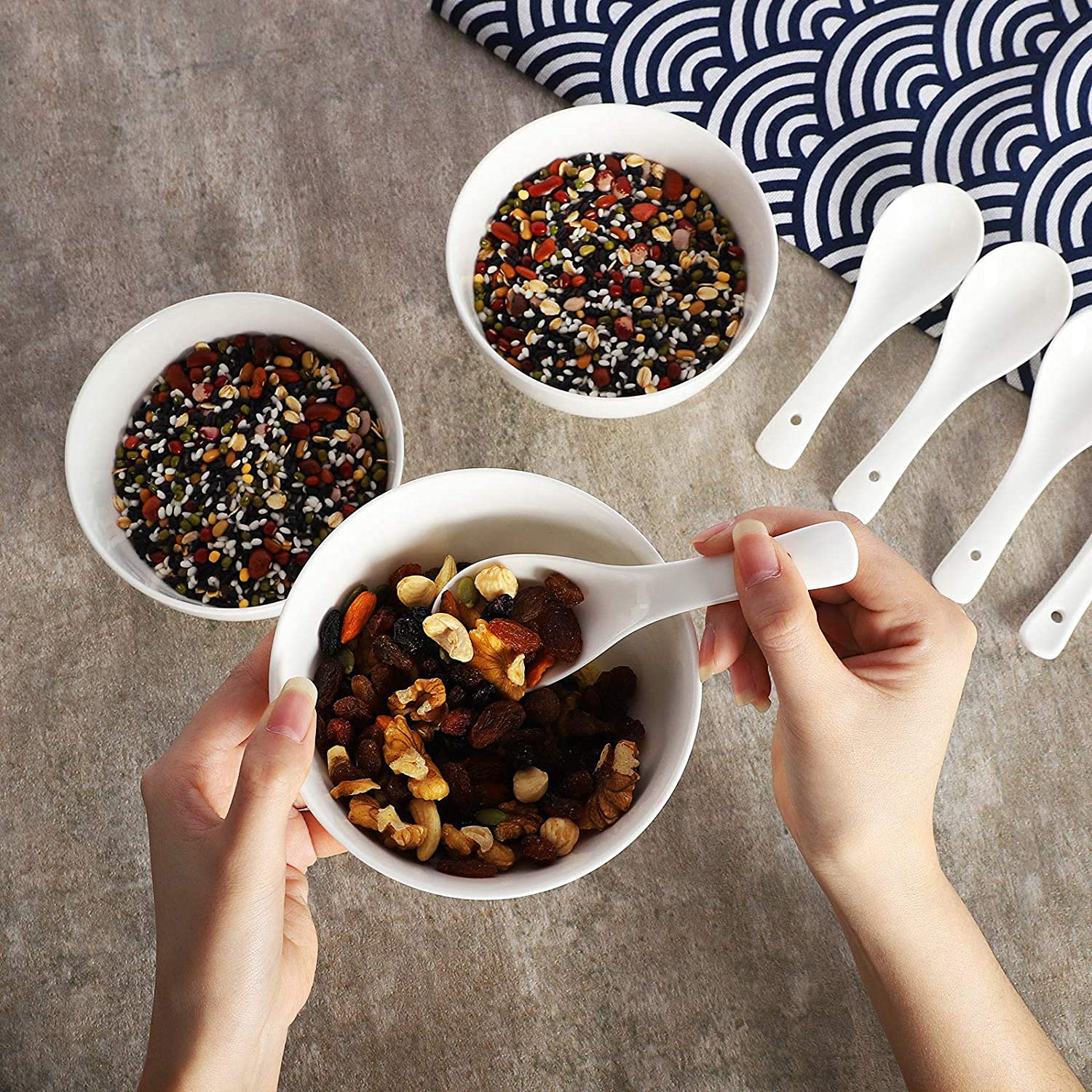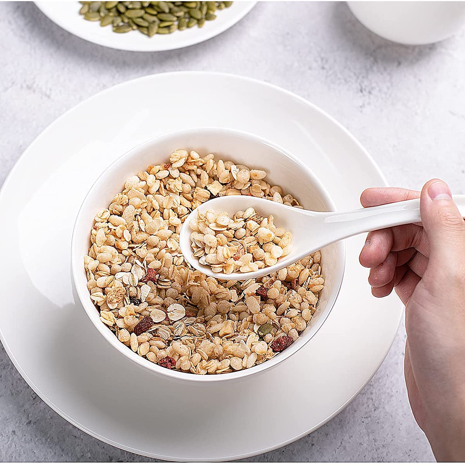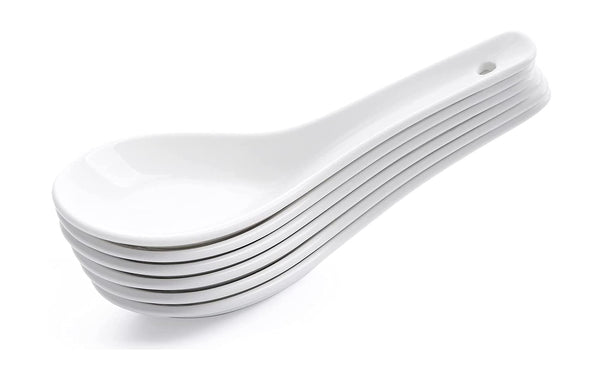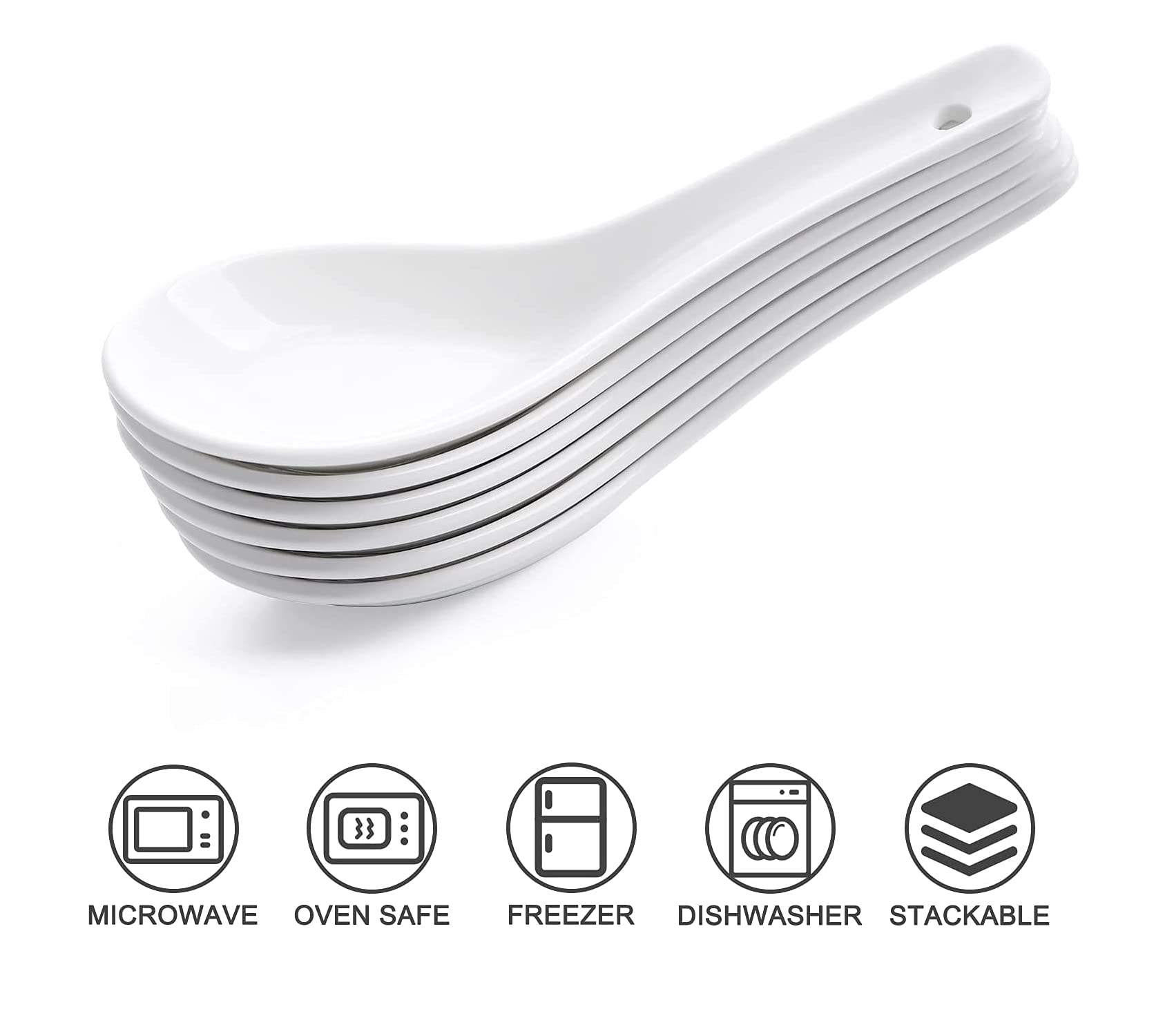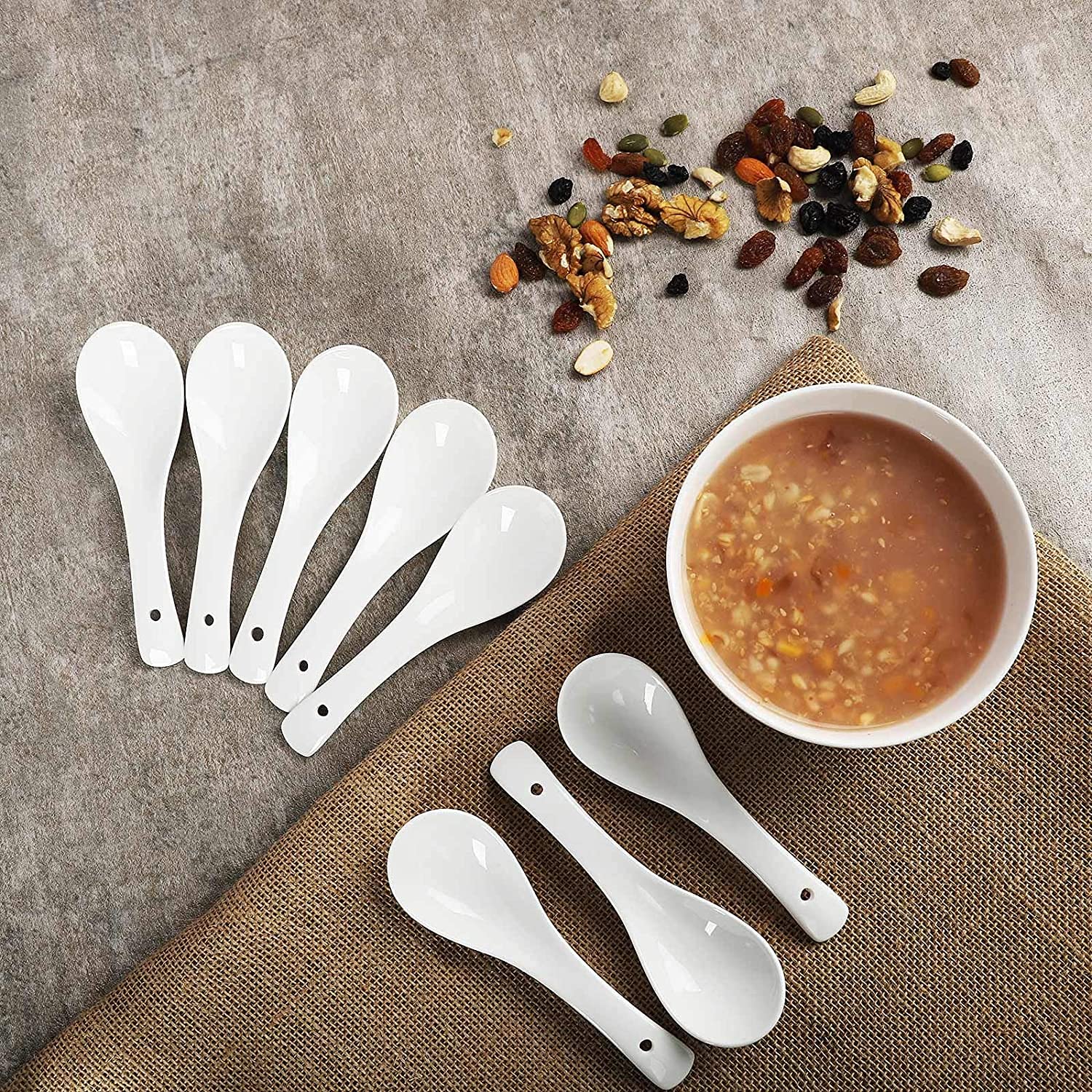 TAGROCK Ceramic Soup and Dessert Spoon, Microwave Safe - Pack of 6 (White)