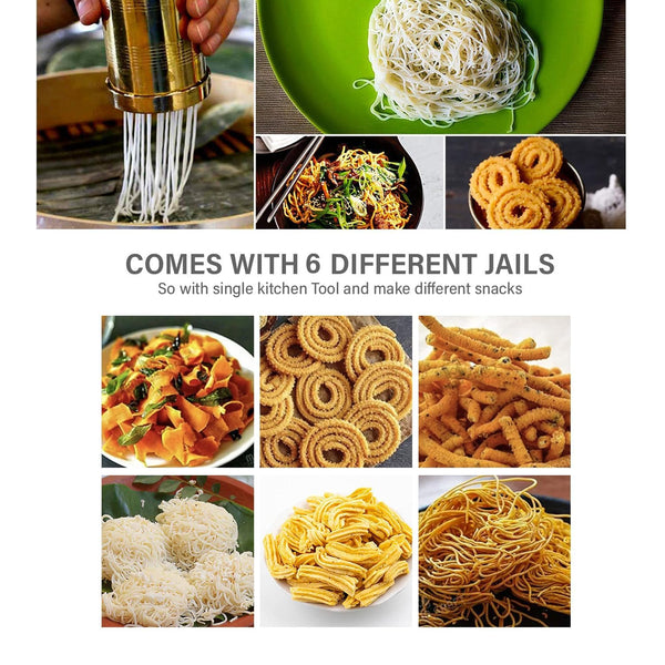 Thangam Classic Brass Sevanazhi Murukku Maker with Free 6 Different Jali for Making Snacks of Sev Bhujia Chakli Gathiya Janthikalu Sevia Idiyappam Ribbon Pakoda Sev Sancha Muruku Maker Machine (500gm)