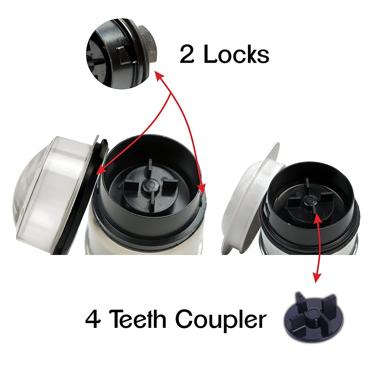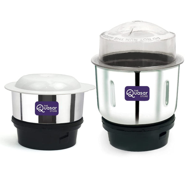 The Quasar Store Combo Chutney Jar, Mixer Jar (180 Ml 400 Ml) Suitable For All Local & Branded Mixer Which Comes With 2 Lock & 4 Teeth Coupler - Silver
