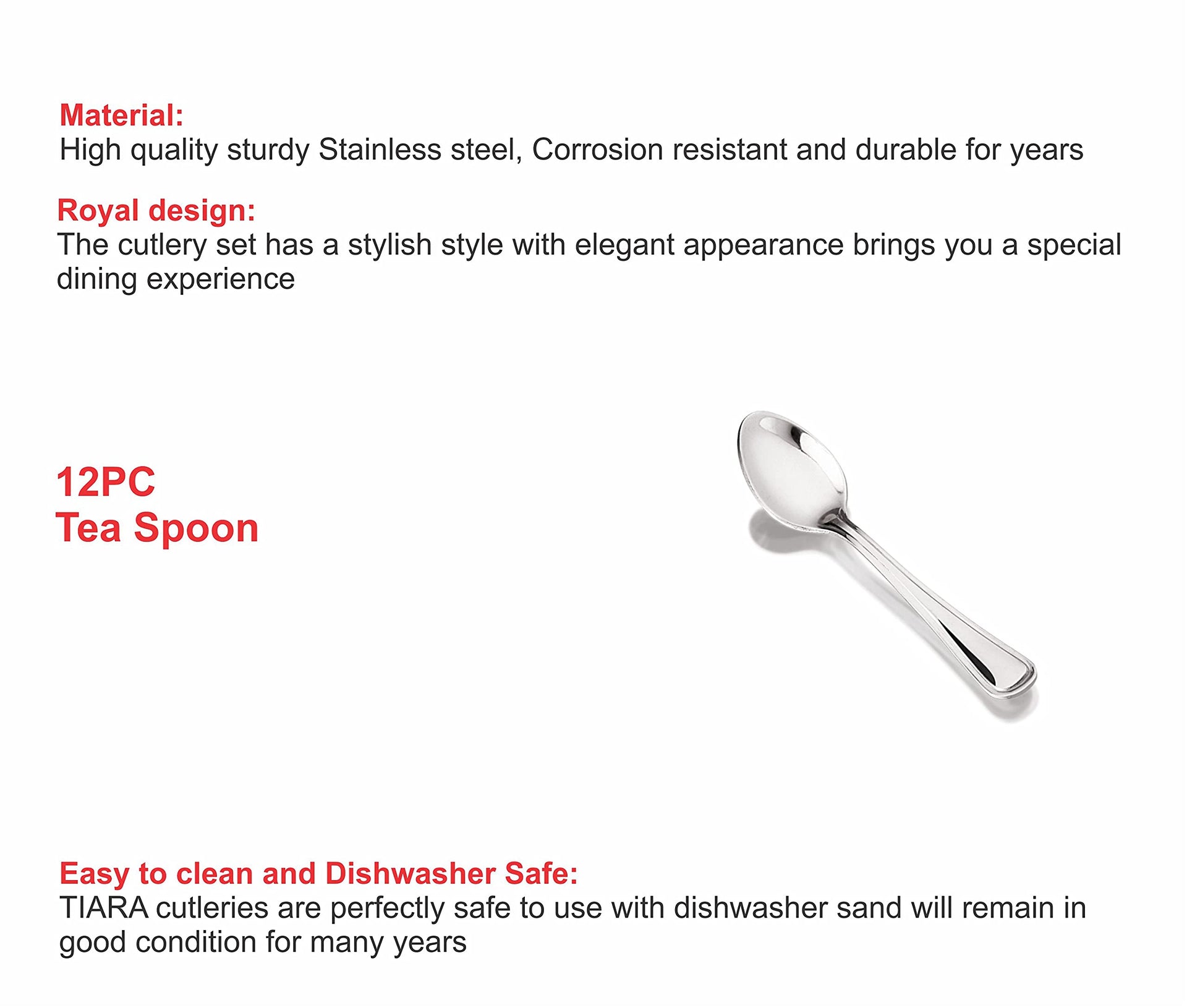 TIARA - Royal 12Pc Tea Spoon Stainless Steel Cutlery Set