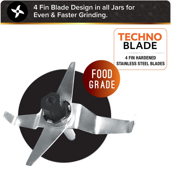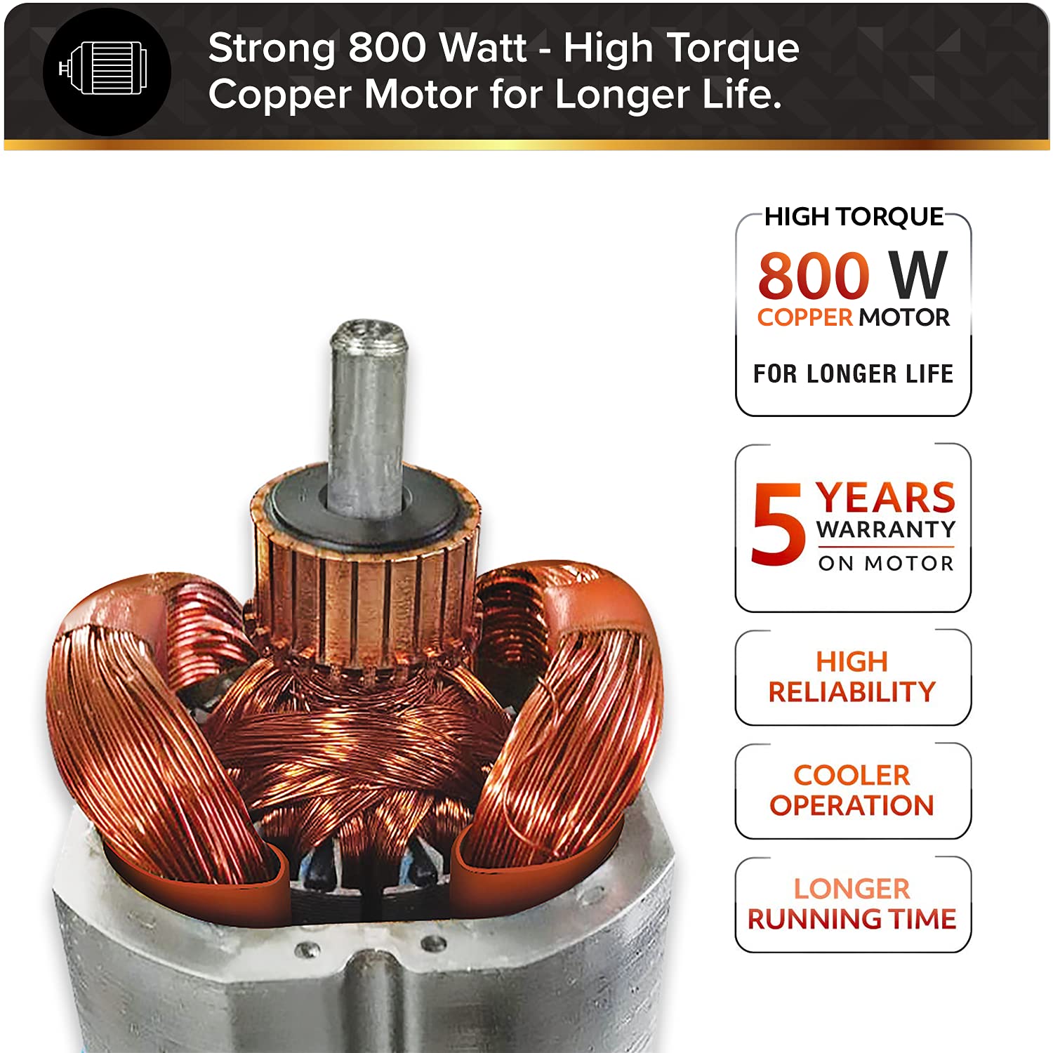 Usha Maximus Plus 800-Watt Copper Motor Mixer Grinder with 4 Jars and 5 Years Motor Warranty(Black & Stainless steel)