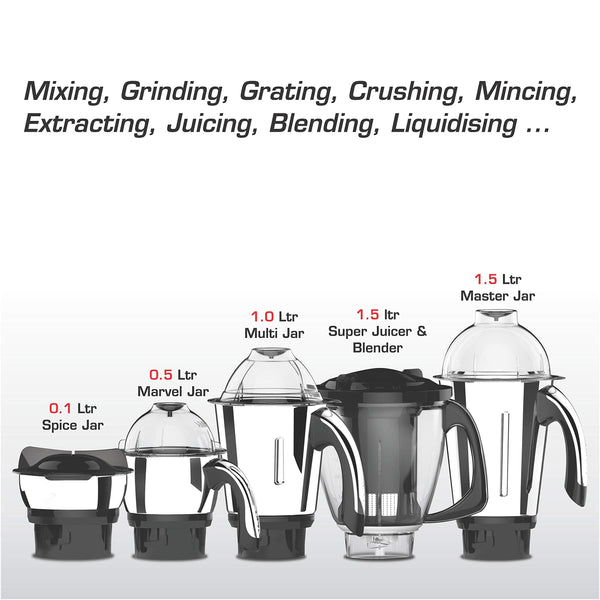Vidiem Acrylonitrile Butadiene Styrene Mixer Grinder 518 A Vstar Premium 750Watt(Black)With 4 Leakproof Jars&1 Juicer Mixer Grinder|Self-Lock For Wet&Dry Spices,Chutneys&Curries|5 Years Warranty(750)