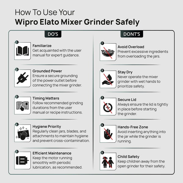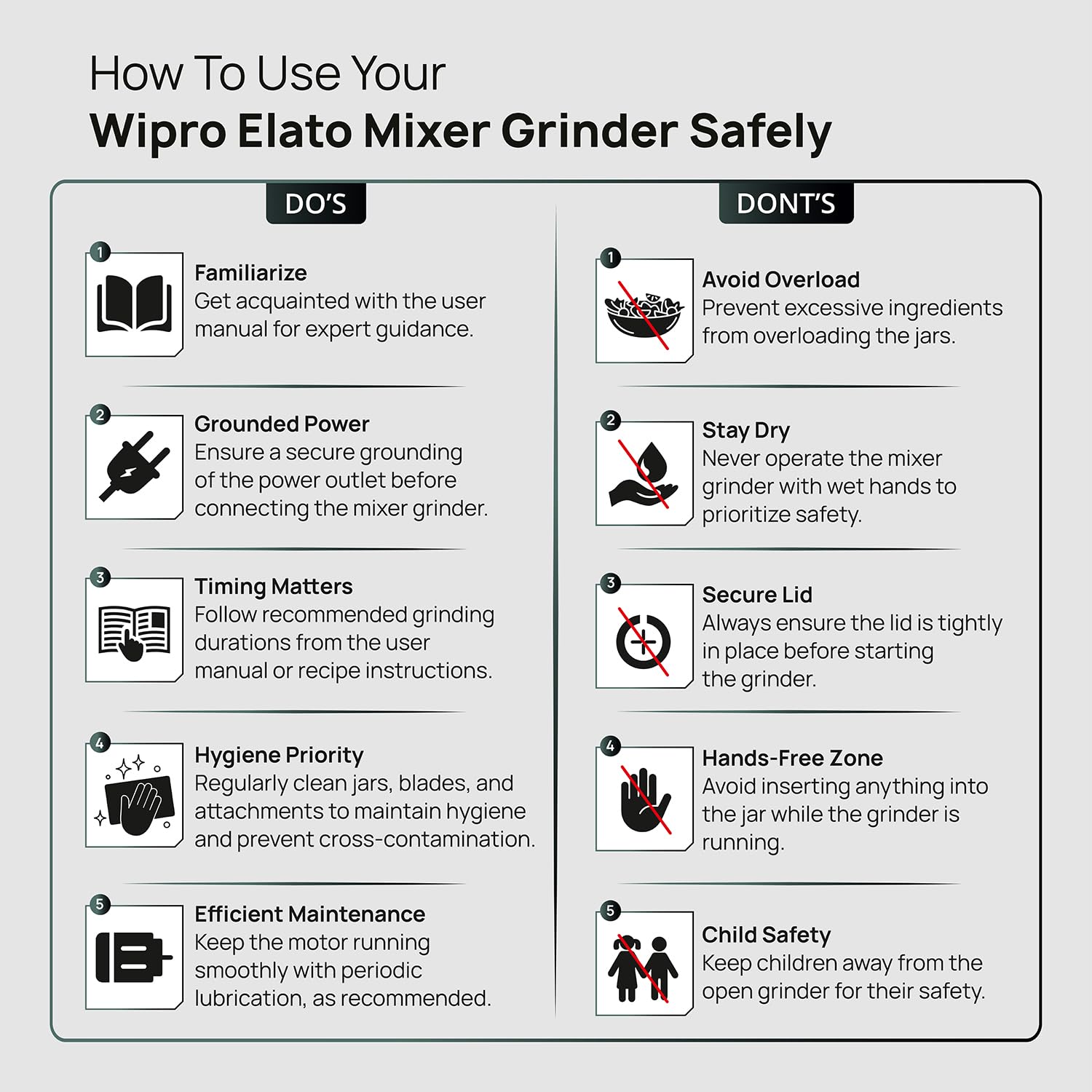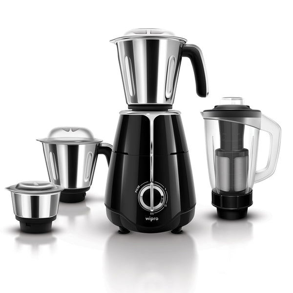 Wipro Elato FMG206 1000 Watt Mixer Grinder with 4 Jars,Heavy Duty 100% Copper Motor,Superfast Grinding,Stone Pounding Blade for Masala, 4 Jars Mixer Grinder 1000 Watt, 5 Years Motor Warranty, Black