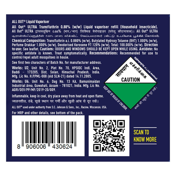 All Out Ultra Liquid Vaporizer, 6 Refills (45ml each) | Kills Dengue, Malaria & Chikungunya Spreading Mosquitoes| India's Only Mosquito Killer Brand Recommended by Indian Medical Association