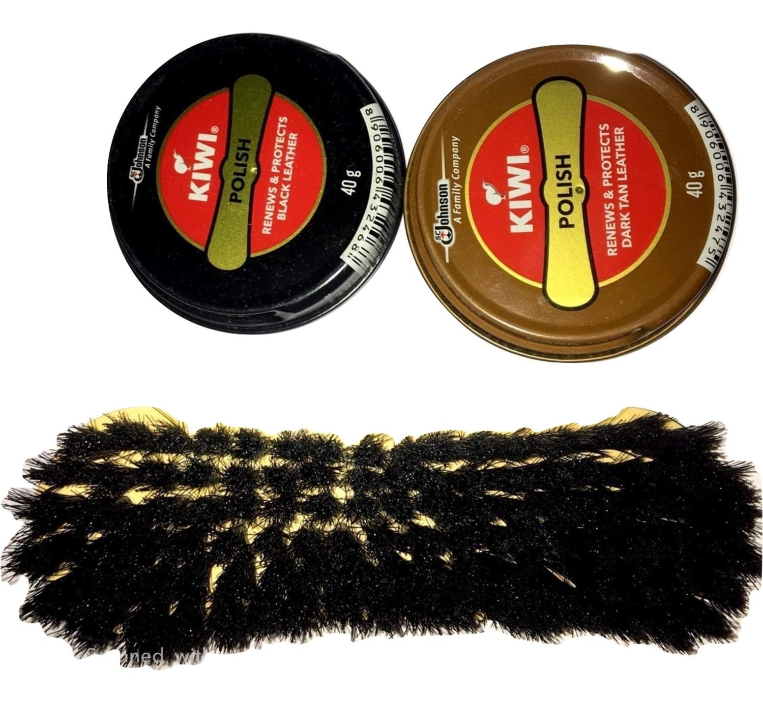 Kiwi Shoe Polish Paste (Black and Dark Tan, 40g) + Kiwi Leather Shine Brush - 1pc