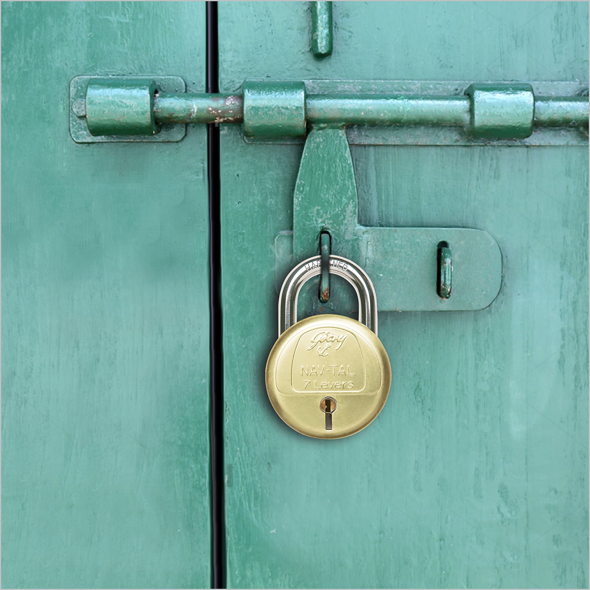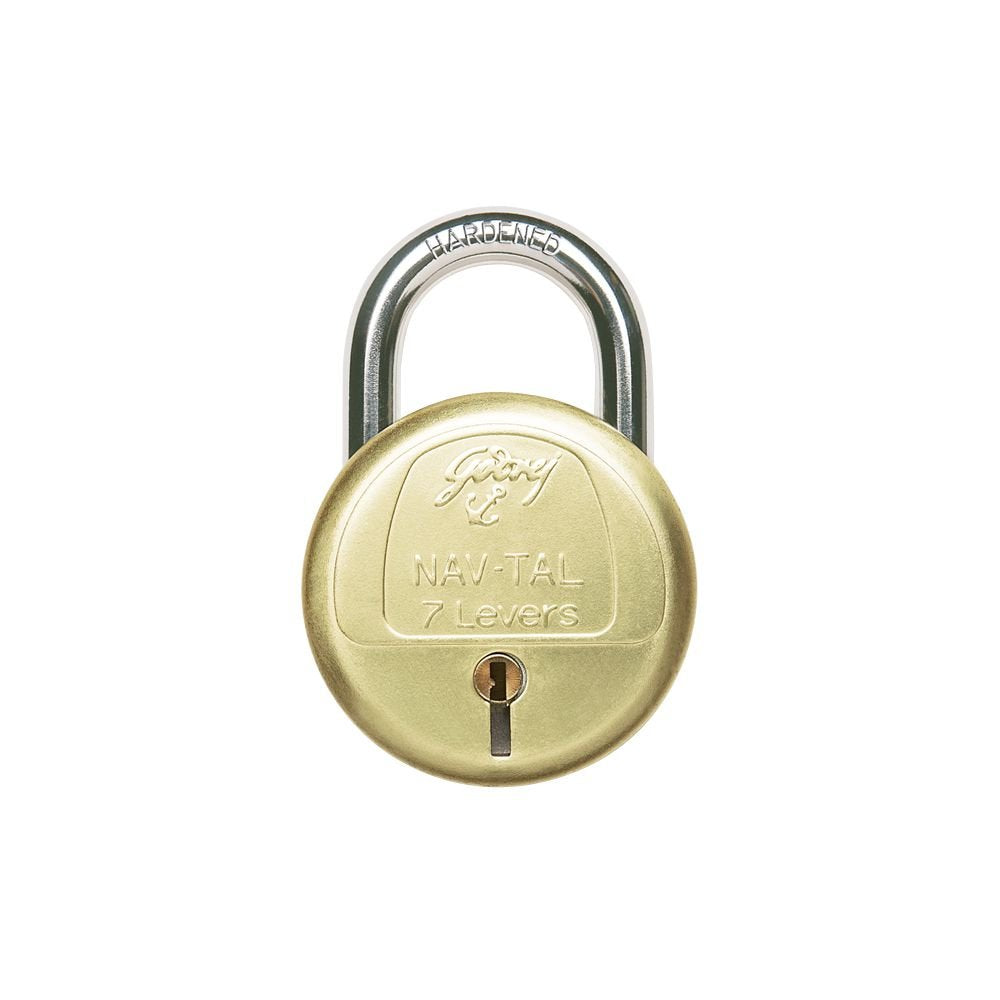Godrej Navtal 7 Levers Round Padlock for Door, Brass Finish Lock for Main Door with 4 Keys (Gold, Pack of 1)