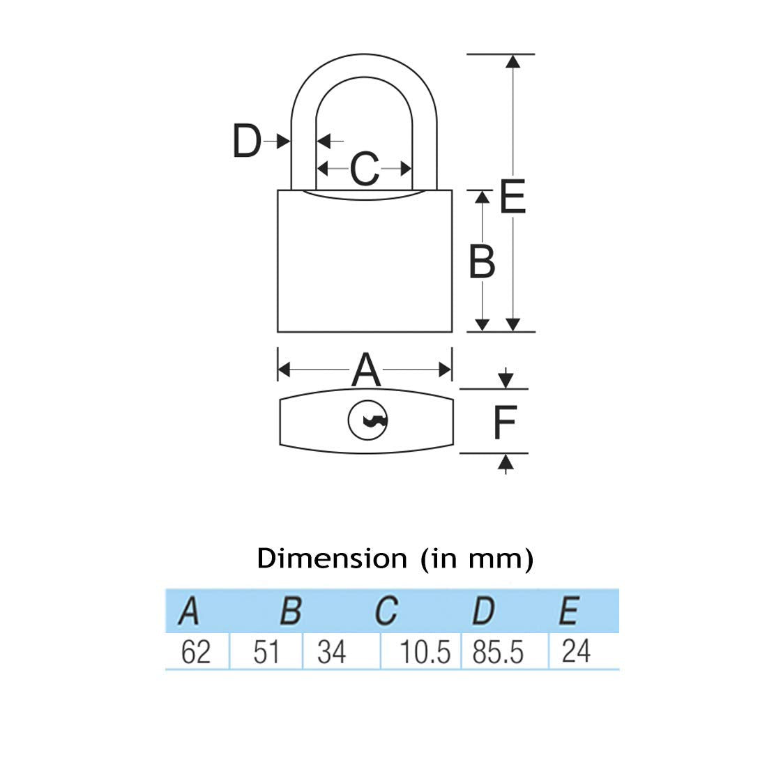 Harrison C I SUPER-0460_PK 2 Iron 3 Pins Padlock with 3 Keys (Pack of 2), Grey