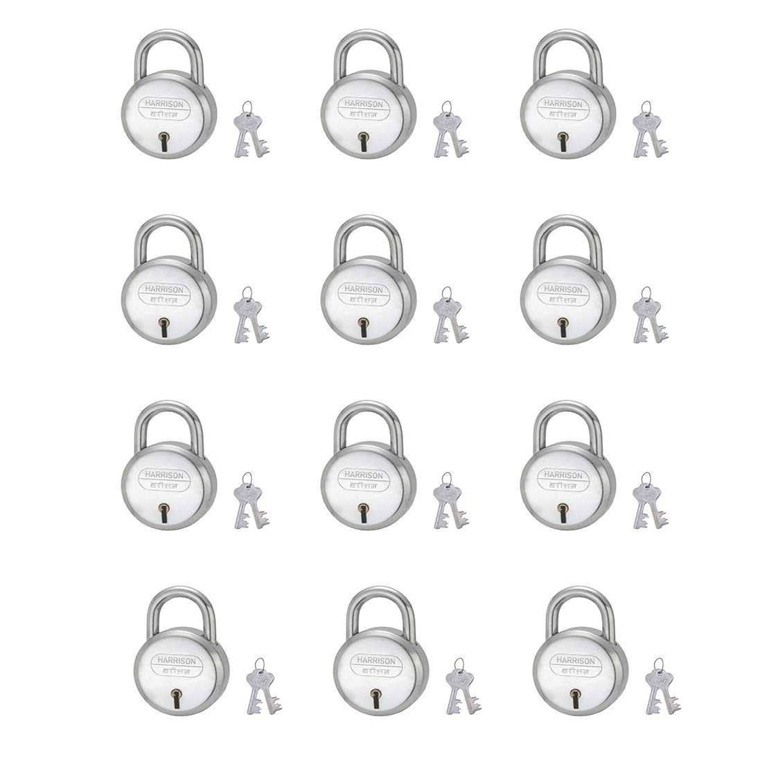 Harrison Padlocks / Padlock 4 Lever With 2 Keys J-6/BCP-0261/ pack of 12/ Stainless Steel matarial/ BCP Finish/door lock, shutter lock, godown lock