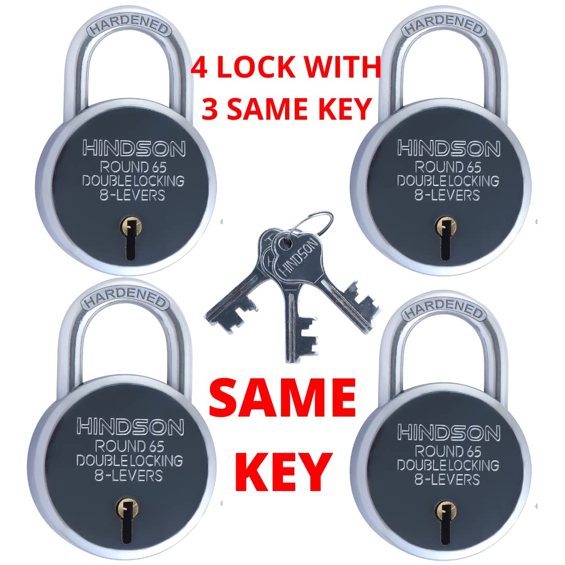 HINDSON Lock and Key, Door Lock for Home, Shop Same Key for Multiple Lock, 4 Same Key Lock Set, Common Key Lock Set of 4 Silver Finish (Same Key 4 Locks)