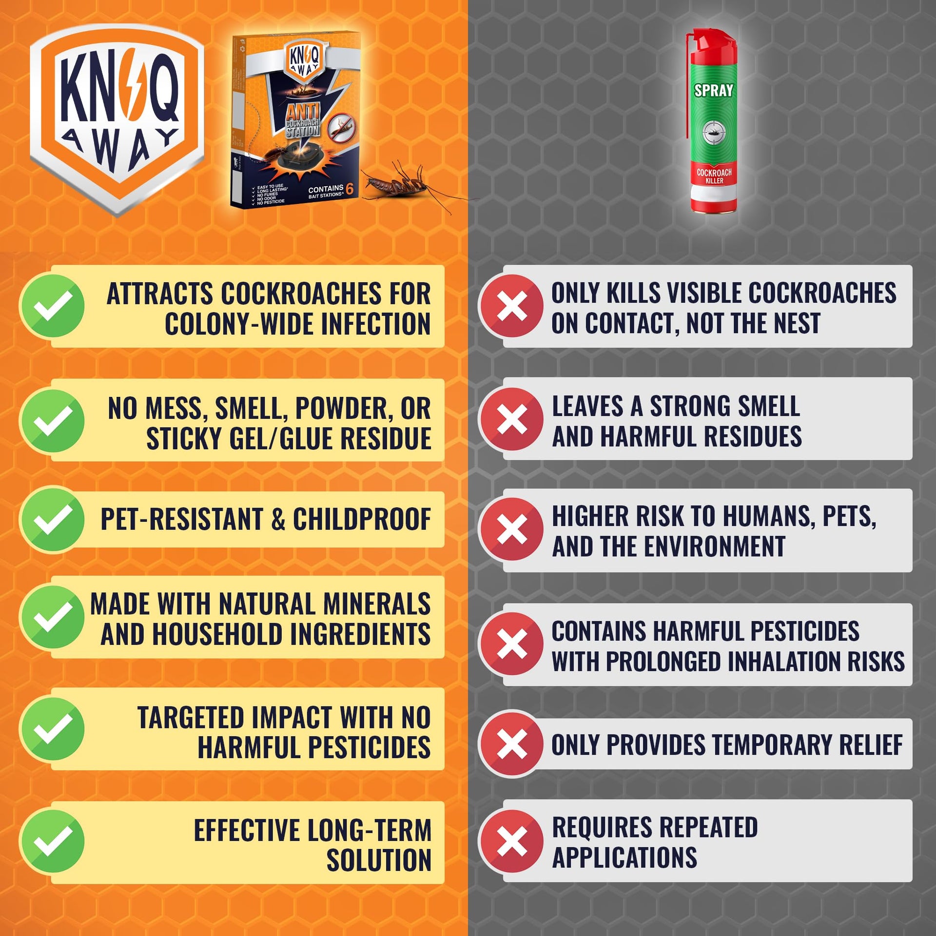 KNOQ AWAY Cockroach Bait, Alternative to Anti Roach Gel, Cockroach Paste, Cockroach Gel, Cockroach Pellet/Powder & Cockroach Spray. Cockroach Repellant for Home,Kitchen, & Hotels (Pack of 6 Baits)
