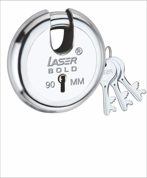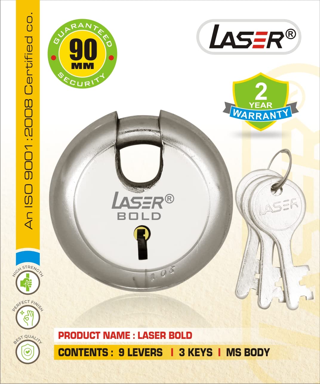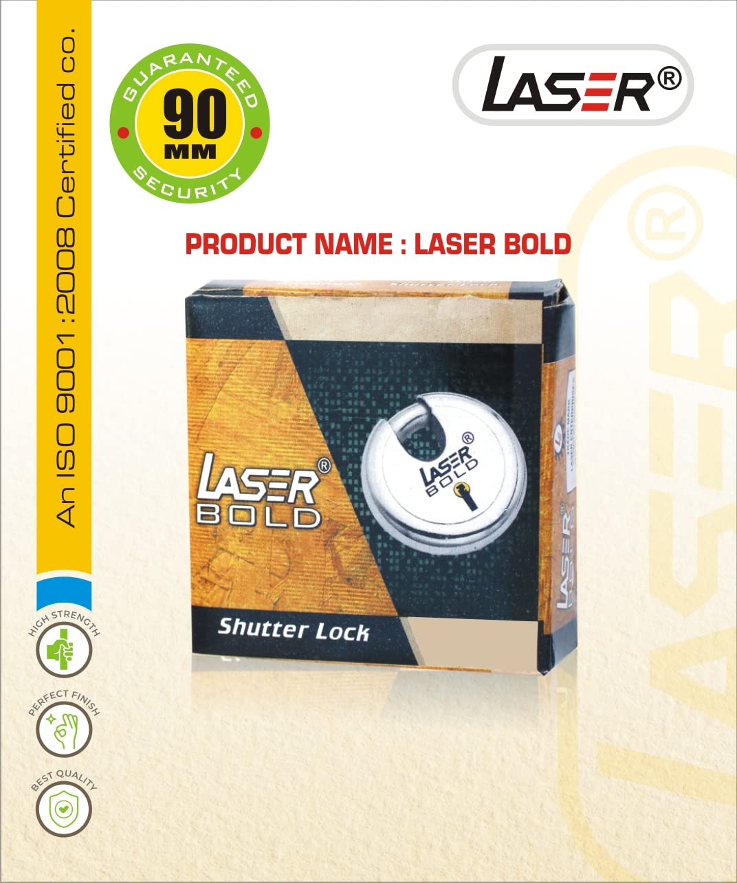 Laser Bold (90 MM) Laser Bold Door Lock & 3 Key Padlock (Silver Finish)