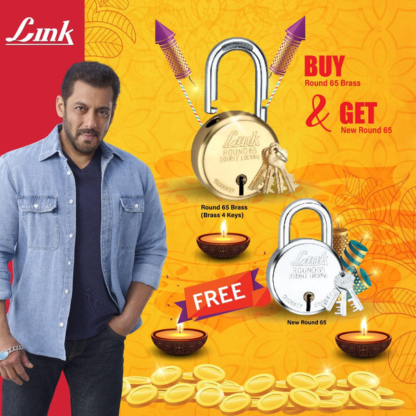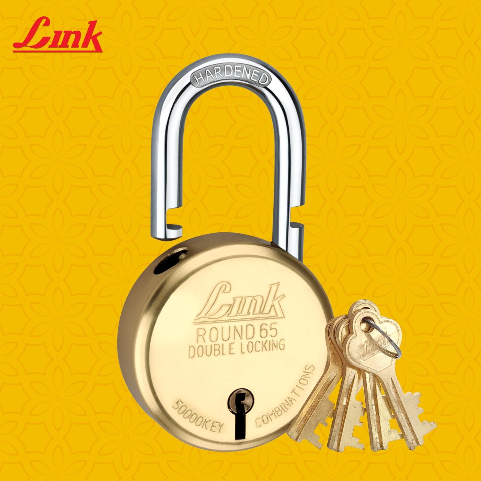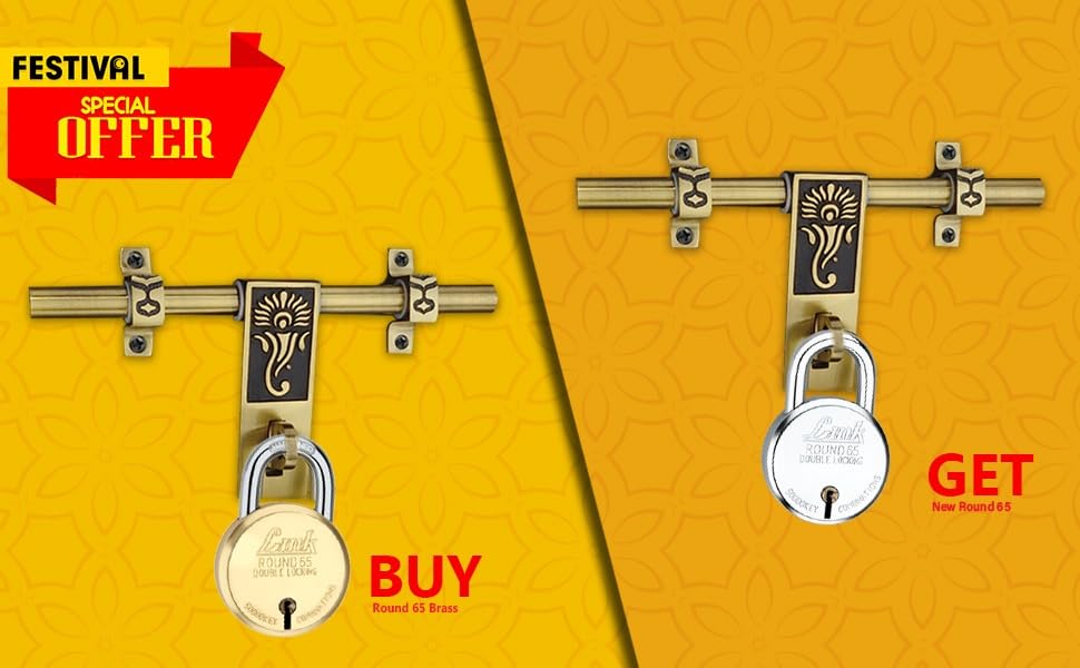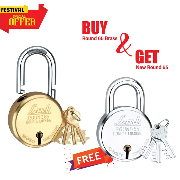 Link Exclusive Silver with Gold Festival Offer Buy Round 65 Brass Body (4 Keys) 8 Levers Padlock Get New Round 65 Free | Hardened Shackle | Double Locking | Buy 1 Get 1 Free | 15 Years Warranty.