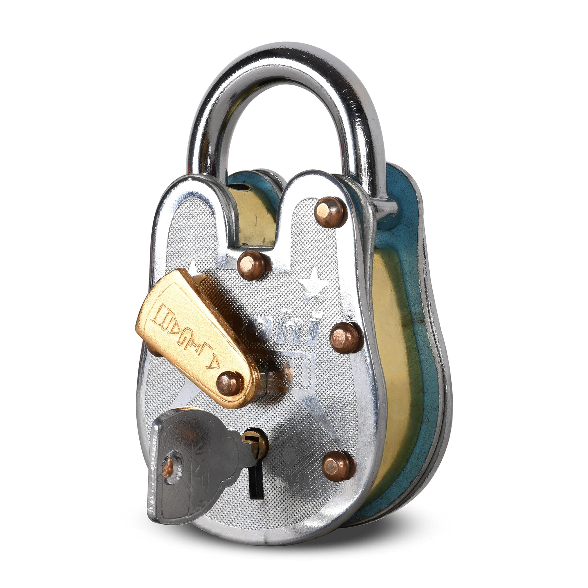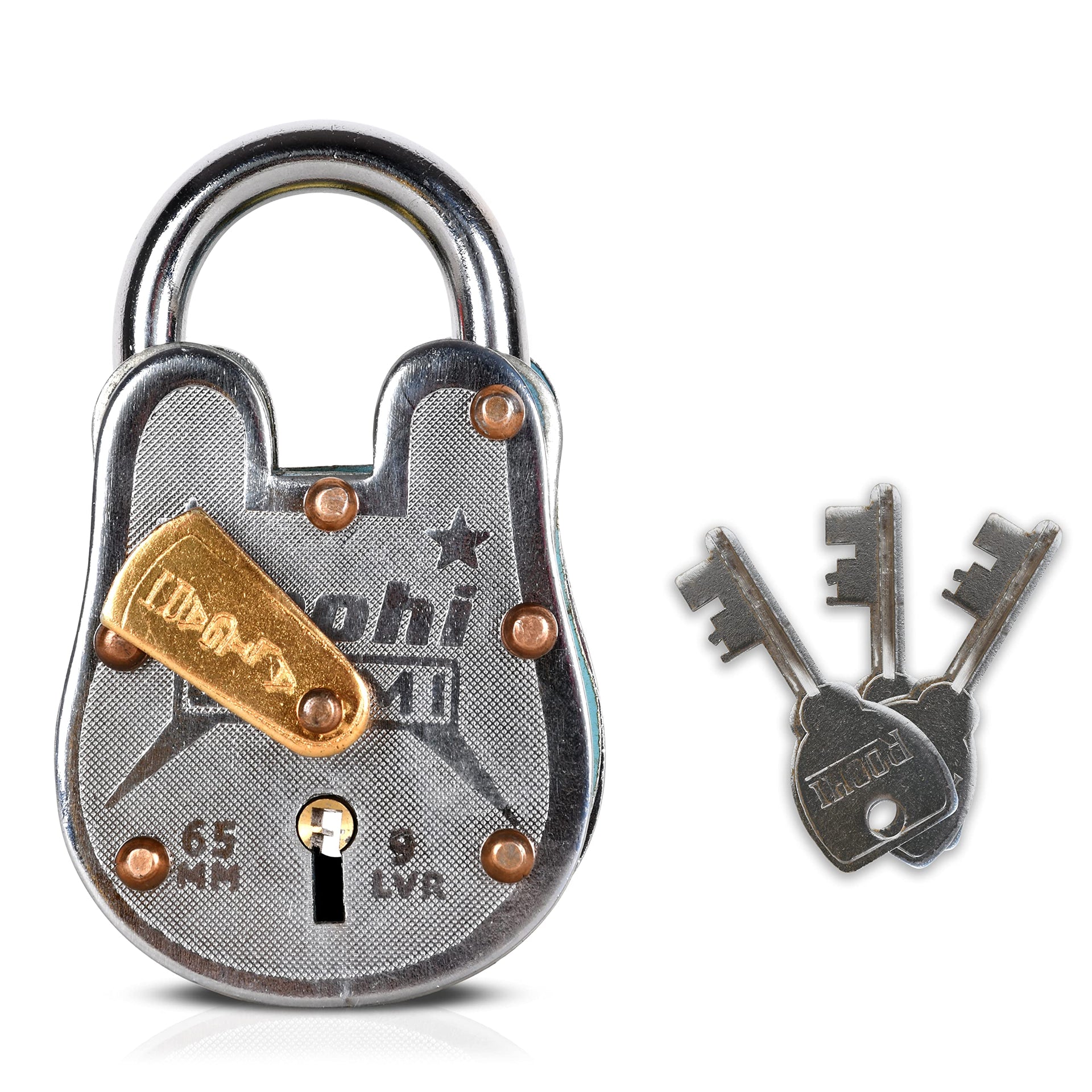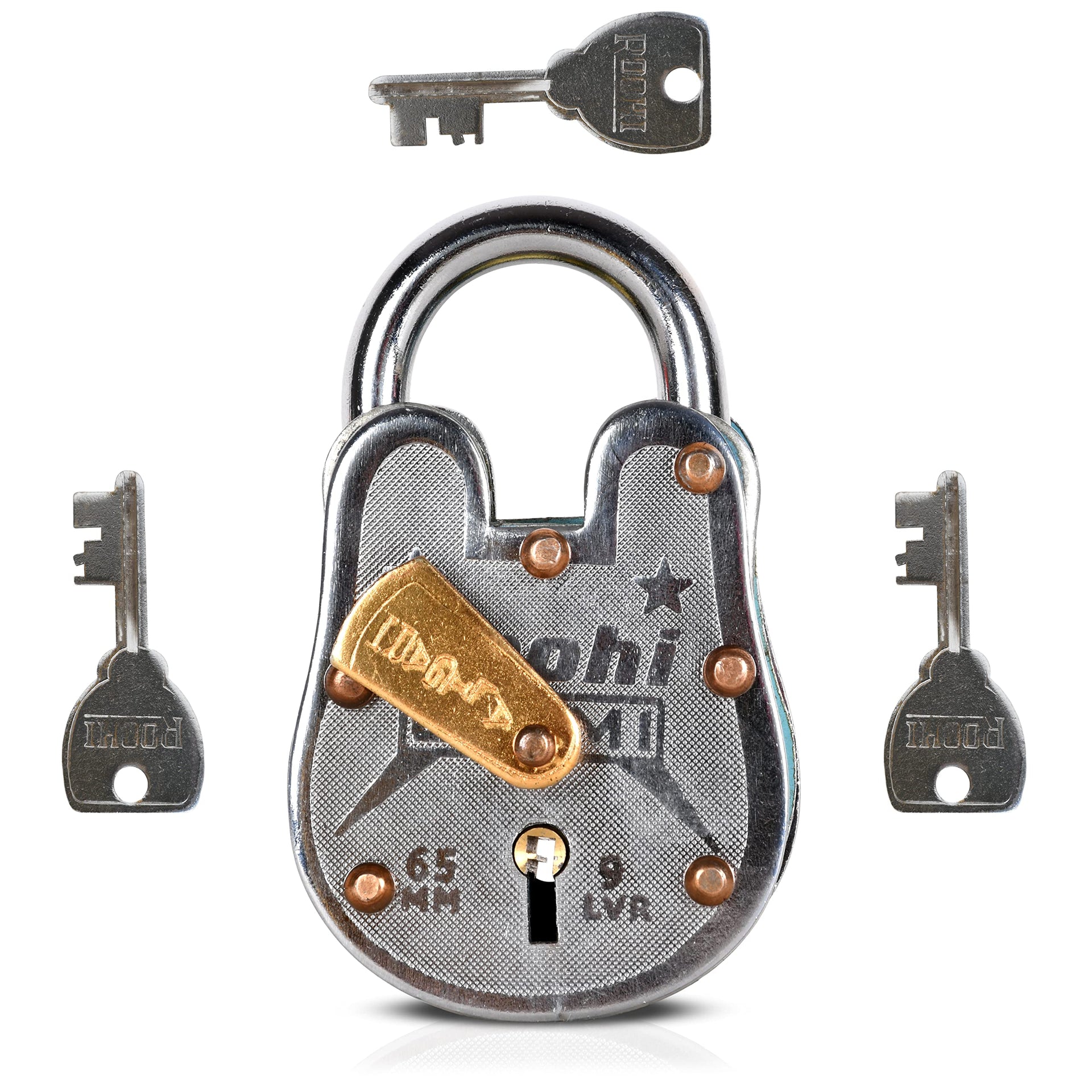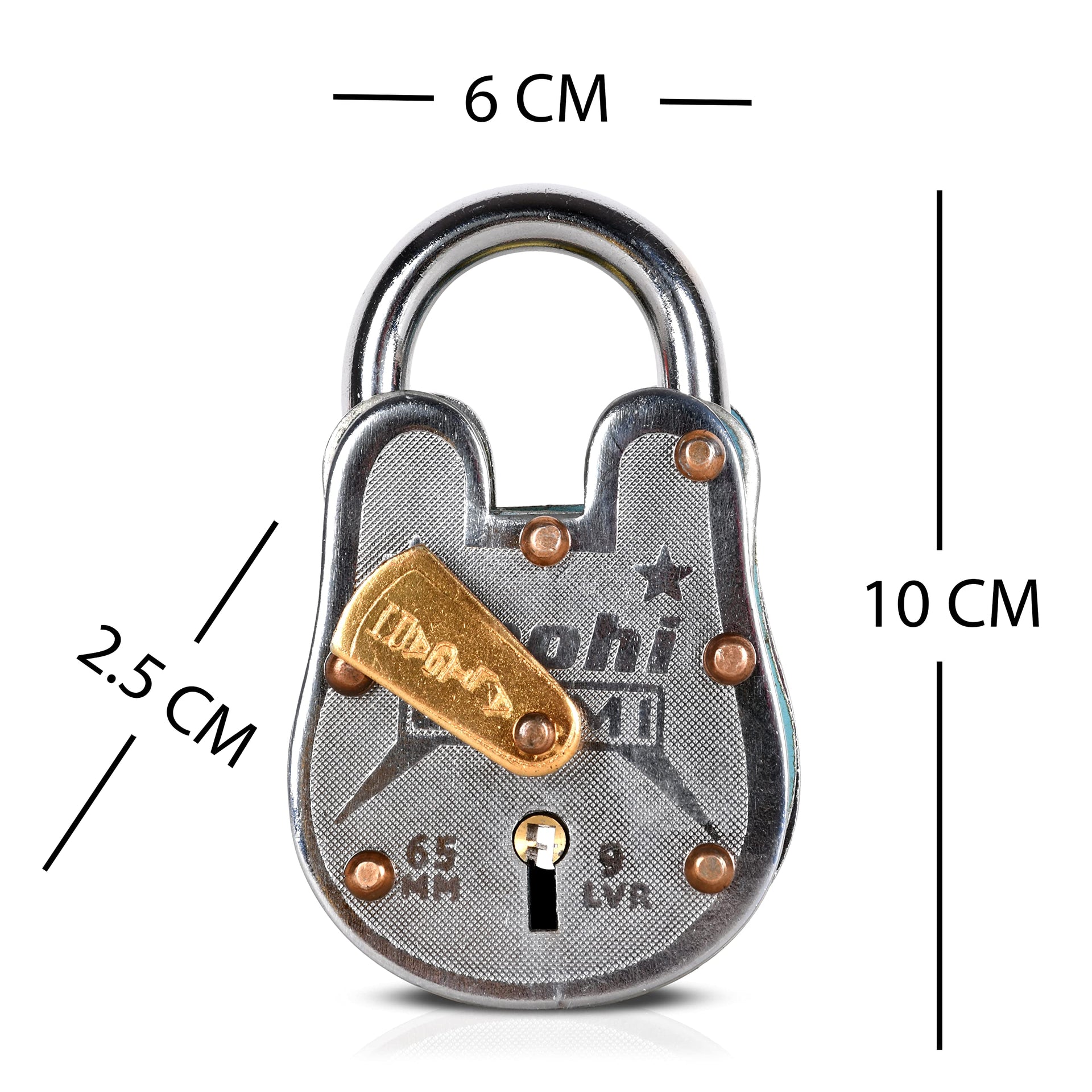 ROUND METAL Stainless Steel Antique Padlock Roohi (9 Levers 65mm Set Of 2) 9 Levers 65mm Double Locking & Key Imported Lock I Suitable Brass Antique Finish I Hudka Indor Lock And Men Door Lock Can Be Opareted Metal Locker I Entique Lock I Safty locker I D
