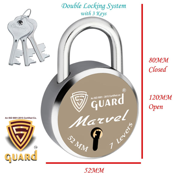 S-GUARD Locks, Padlocks, Door Locks 52MM- 7 Levers, Double Locking-Laser Print-Silver-Gold, Iron Padlocks, Locks and Keys-Pack of 5 (MARVEL-52MM)