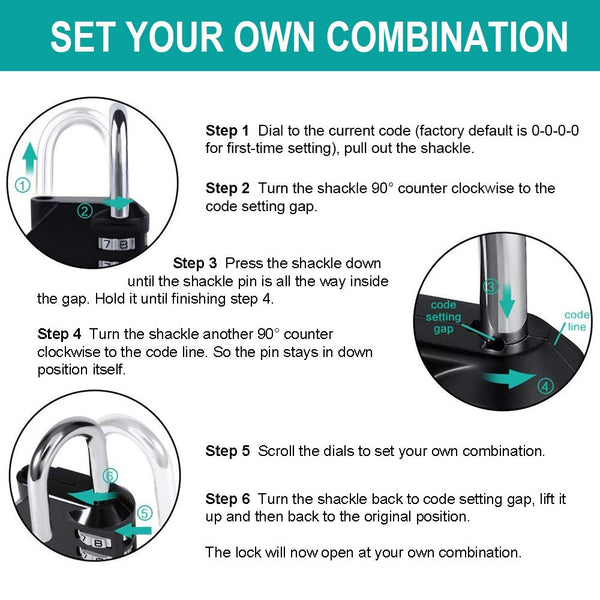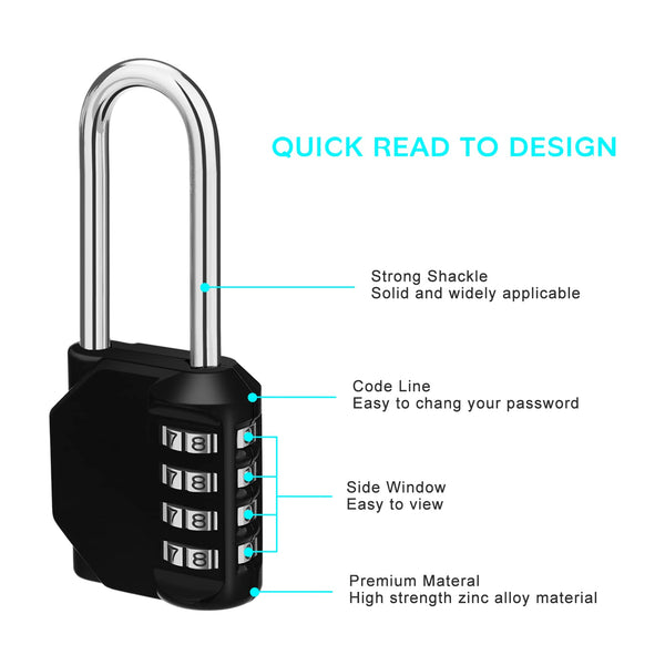 Serplex® Luggage Lock 4 Digit Combination Lock,Long Shackle Padlock and Outdoor Waterproof Resettable Padlock Heavy Duty Long Padlock for Lockers, Outdoor Fence, Shed,Garage (Black)