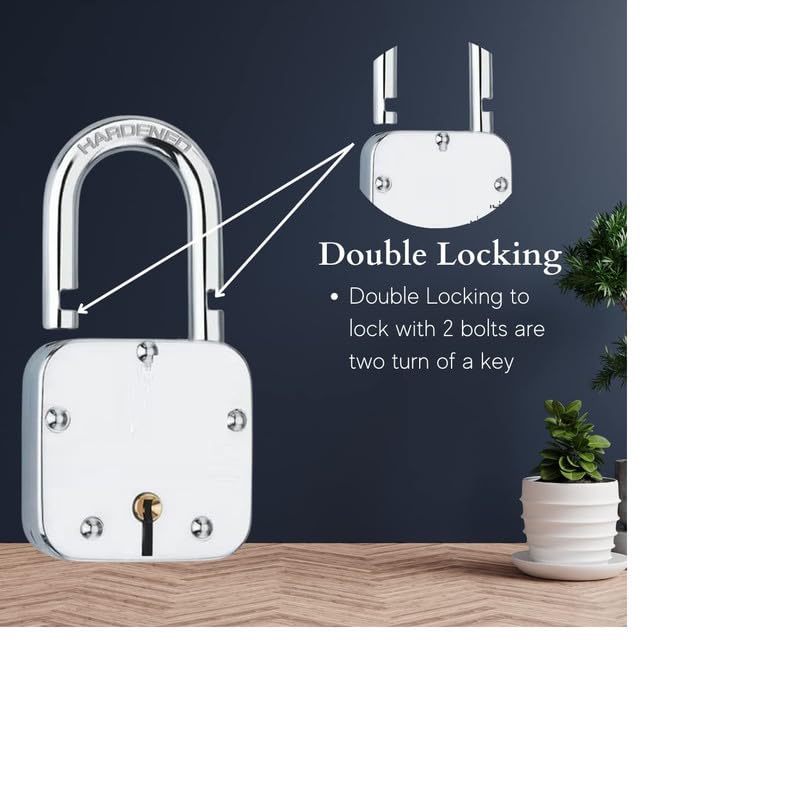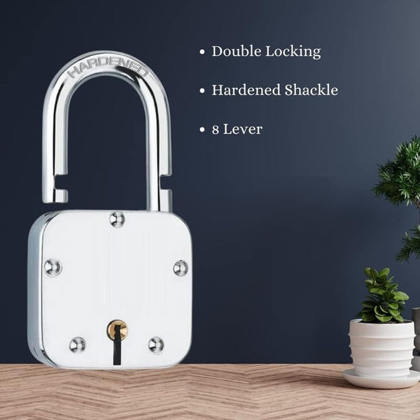 VANSON Atoot 65 mm Lock and Keys | Hardened Shackle Padlock | Home Metal Body | Double Locking | 8 Steel Lever |3 Keys | Silver Finsih | Made in India | P5