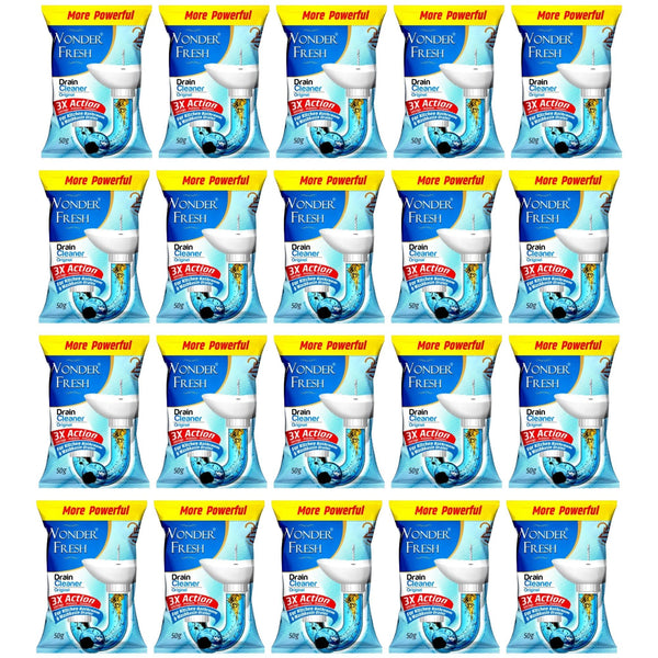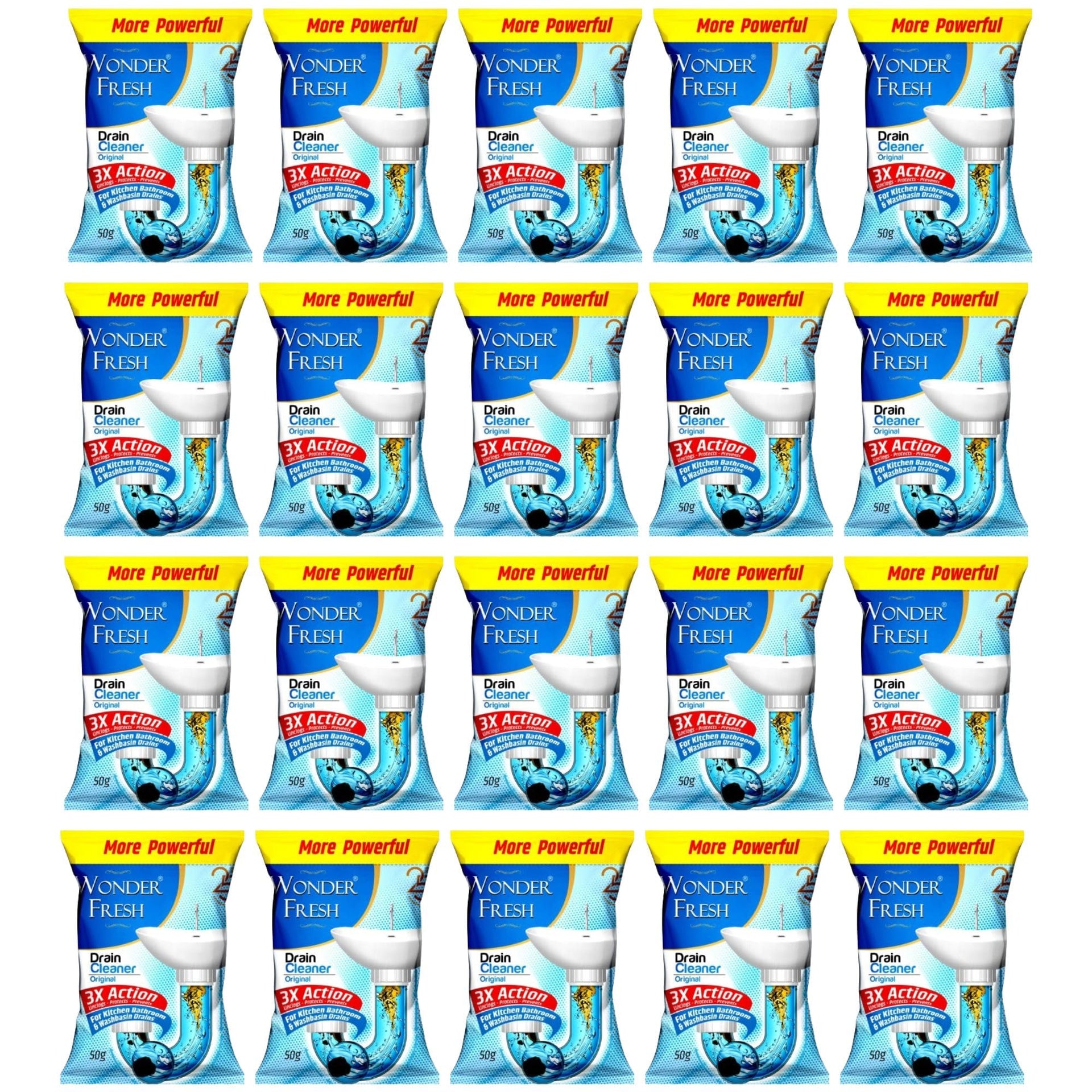 Wonder Fresh Drain Cleaner Powder | Effective Sink Cleaner | Drain Blockage Remover | Wash Basin & Toilet Cleaner | Removes Blockages in Pipes, Sinks & Septic Tanks | 50g (Pack of 20)