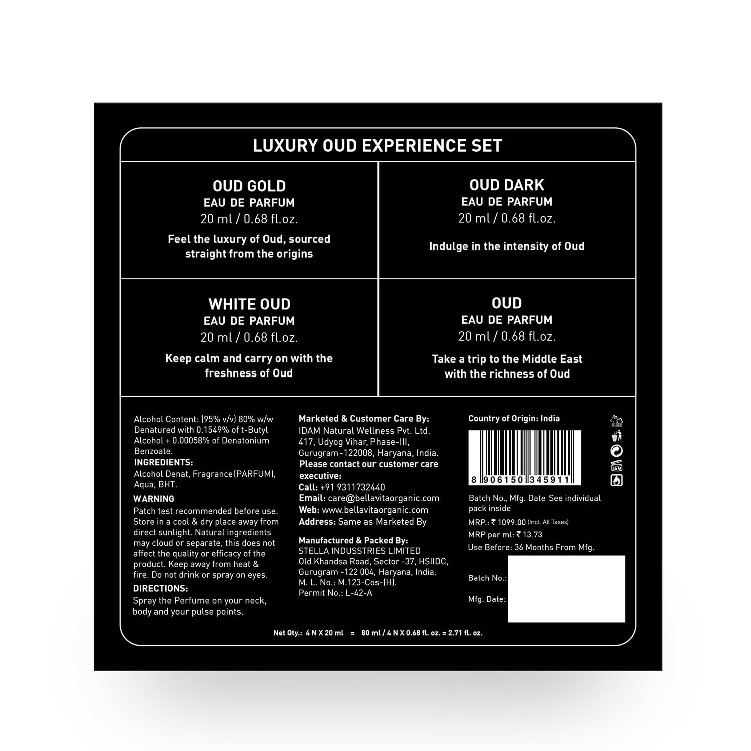 Bella Vita Luxury OUD Experience Eau De Parfum Gift Set 4 x 20ml for Men & Women with OUD, OUD GOLD,OUD DARK,WHITEOUD Perfume|Long Lasting EDP Fragrance Scent