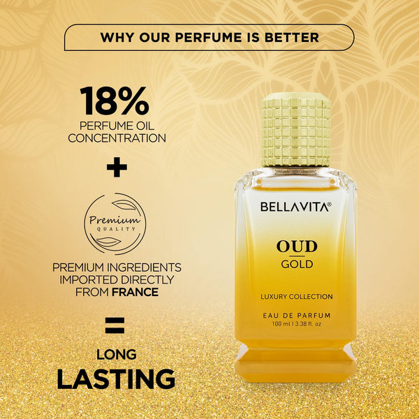 Bella Vita Luxury OUD GOLD Eau De Parfum Intense Perfume with Caramel, Rose, Vanilla,Sandalwood|Premium, Long Lasting Oriental Fragrance for Men 100ML