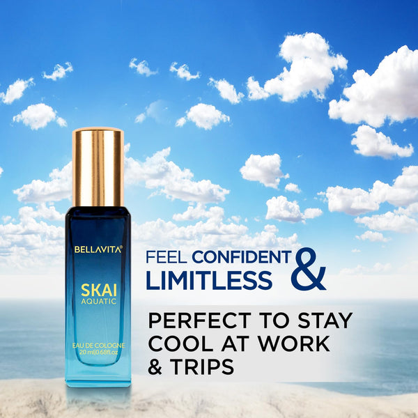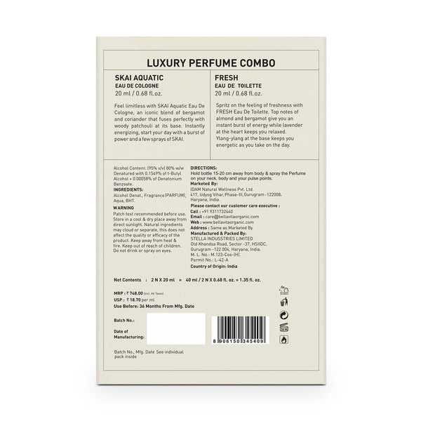 Bella Vita Luxury Skai Aquatic EDC & Fresh EDT Unisex Perfume Combo with Bergamot,Ylang Ylang,Pink Pepper|Long Lasting Fragrance Scent|Pack of 2, 20Ml Each
