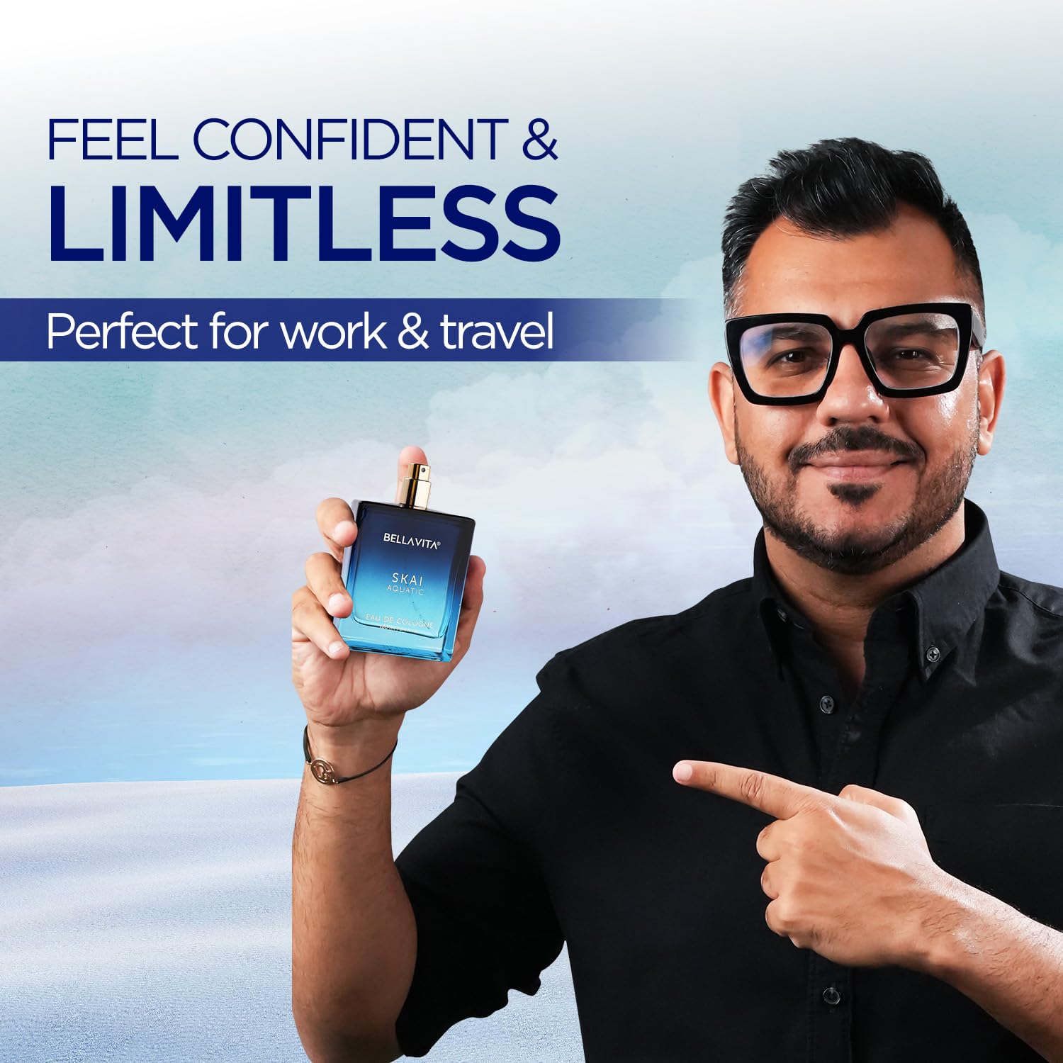 Bella Vita Luxury Skai Aquatic Unisex Eau De Cologne with Bergamot, Lavender & Patchouli|Premium, Long Lasting Woody Fragrance for Men & Women, 100 ML