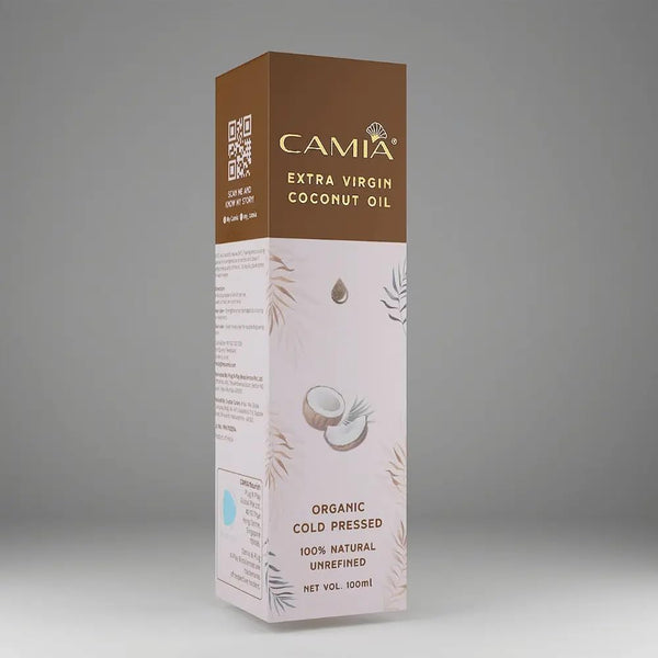 CAMIA Premium Coconut Oil for Skin & Hair | Cold Pressed & Organic Coconut Oil | 100% Pure, Natural, Undiluted, Unrefined Hair Oil | Ideal for Skiin & Hair | Free From Chemicals | 100 ML Glass Bottle