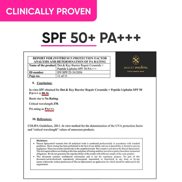 Dot & Key Ceramide & Peptide Barrier Repair Lip Balm SPF 50, PA+++ | Red Romance | UVA/UVB Lip Protection | Soft Tinted Lip Moisturizer | Boosts Collagen & Instantly Plumps Lip | Lip Balm for Women | 10gm