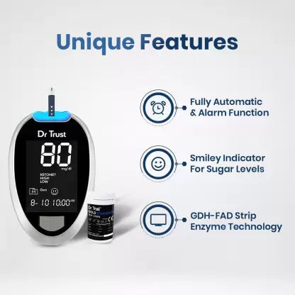 Dr. Trust (USA) Digital Glucose Blood Sugar testing Monitor Machine with 10 Strips Glucometer (Black)