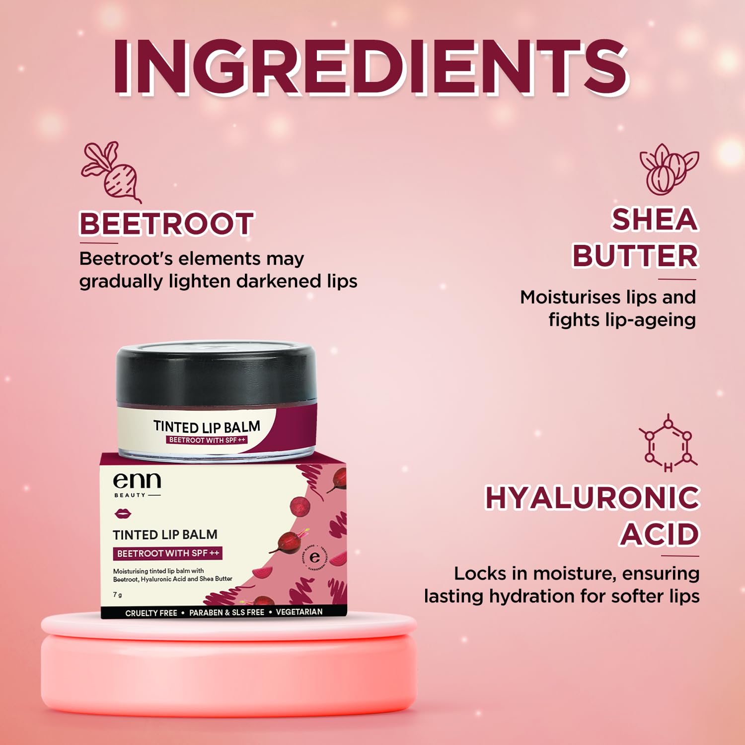 Enn Beauty Beetroot Lip Balm 7g With SPF 10 PA+++ For Dark Lips, Tinted Lip Care With Beetroot Extract, Shea Butter, Hyaluronic Acid for Dry & Chapped Lips