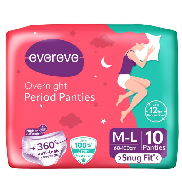 Evereve Ultra Absorbent Disposable Period Panties, M-L, 10's Pack, 0% Leaks, Sanitary Protection For Women & Girls, Maternity Delivery Pads, 360 Degree Protection, Postpartum & Overnight Use, Heavy Flow